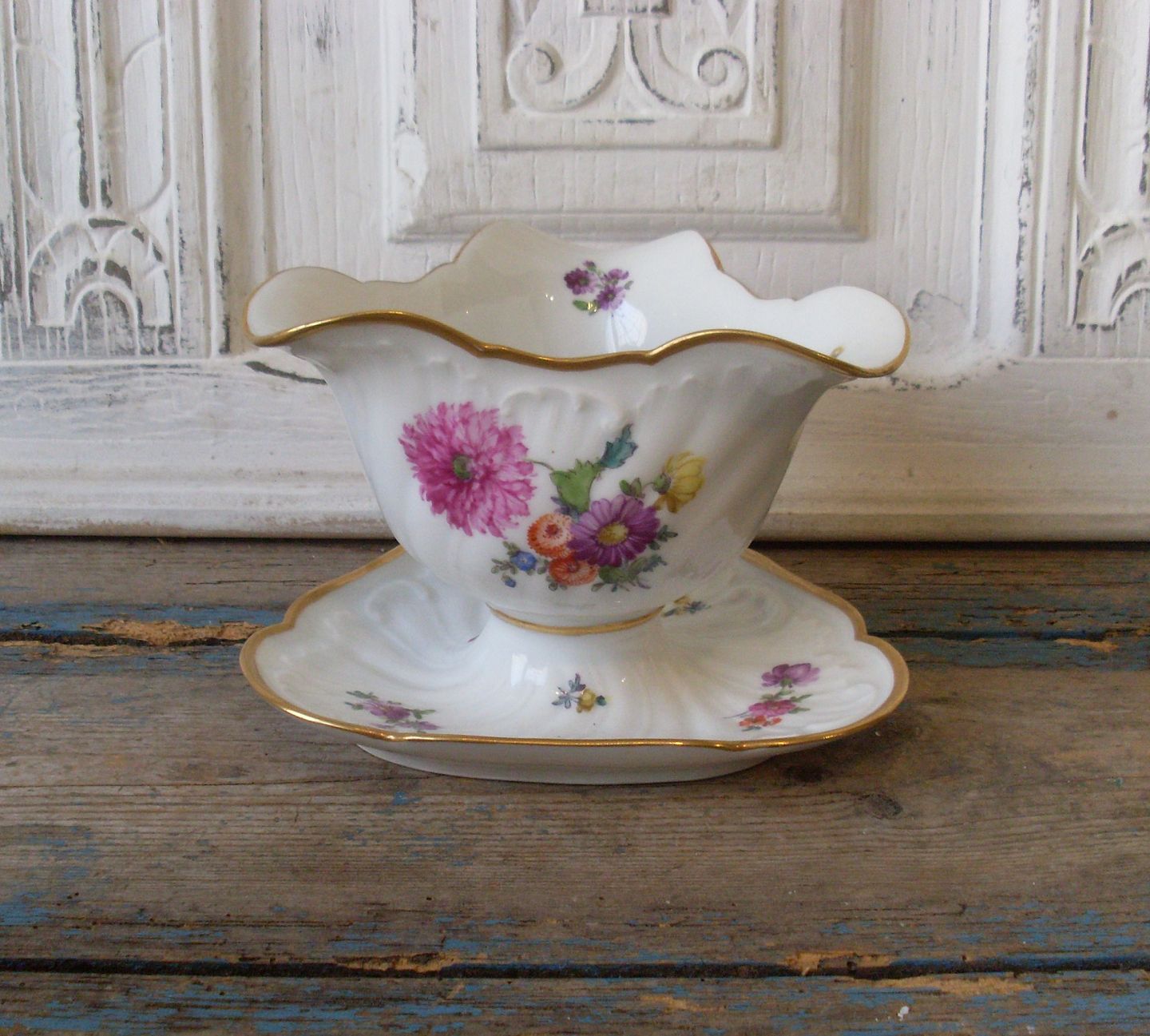 Royal Copenhagen Saksisk blomst trekantet sauceskål