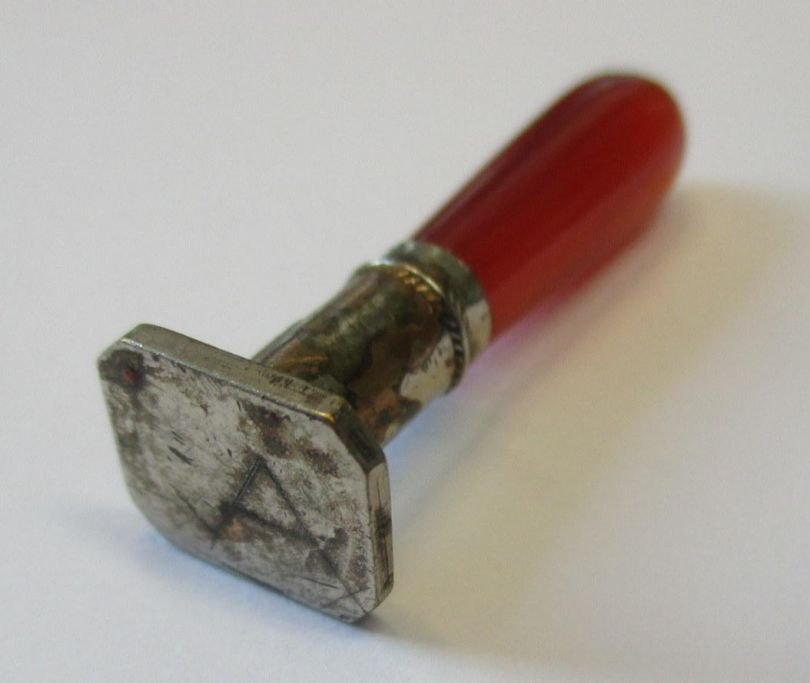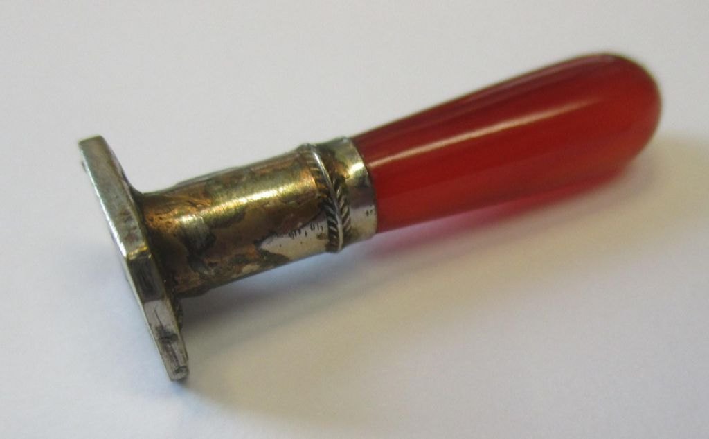 Forsølvet segl med agat, 19. årh. Længde.: 3,3 cm.