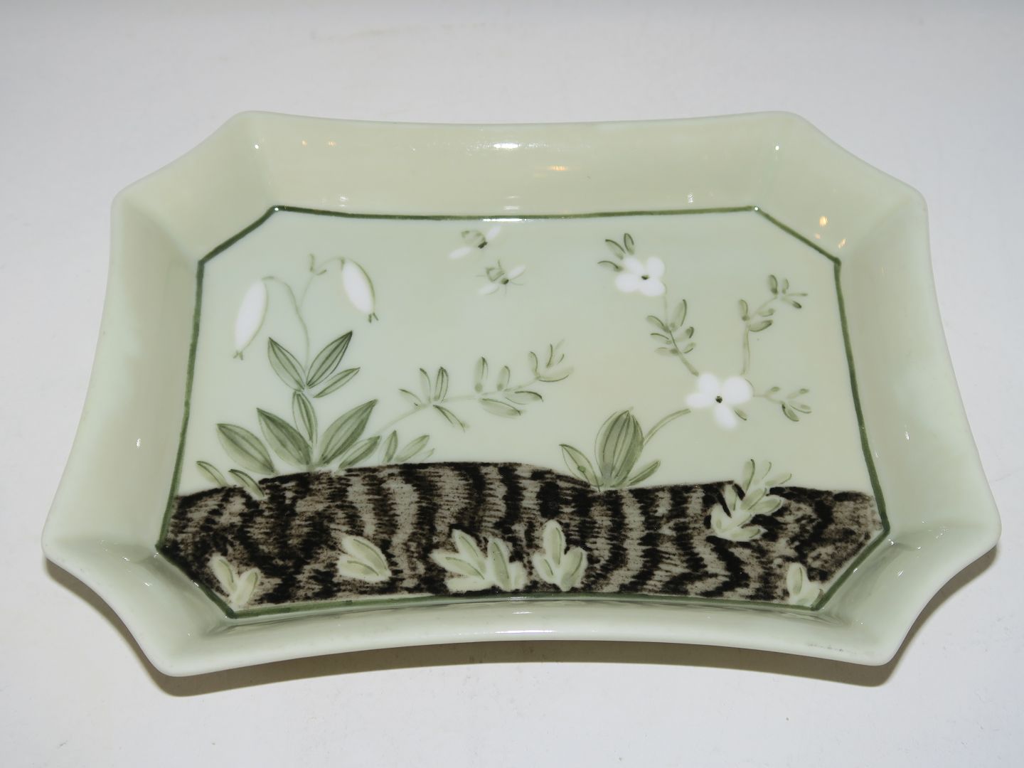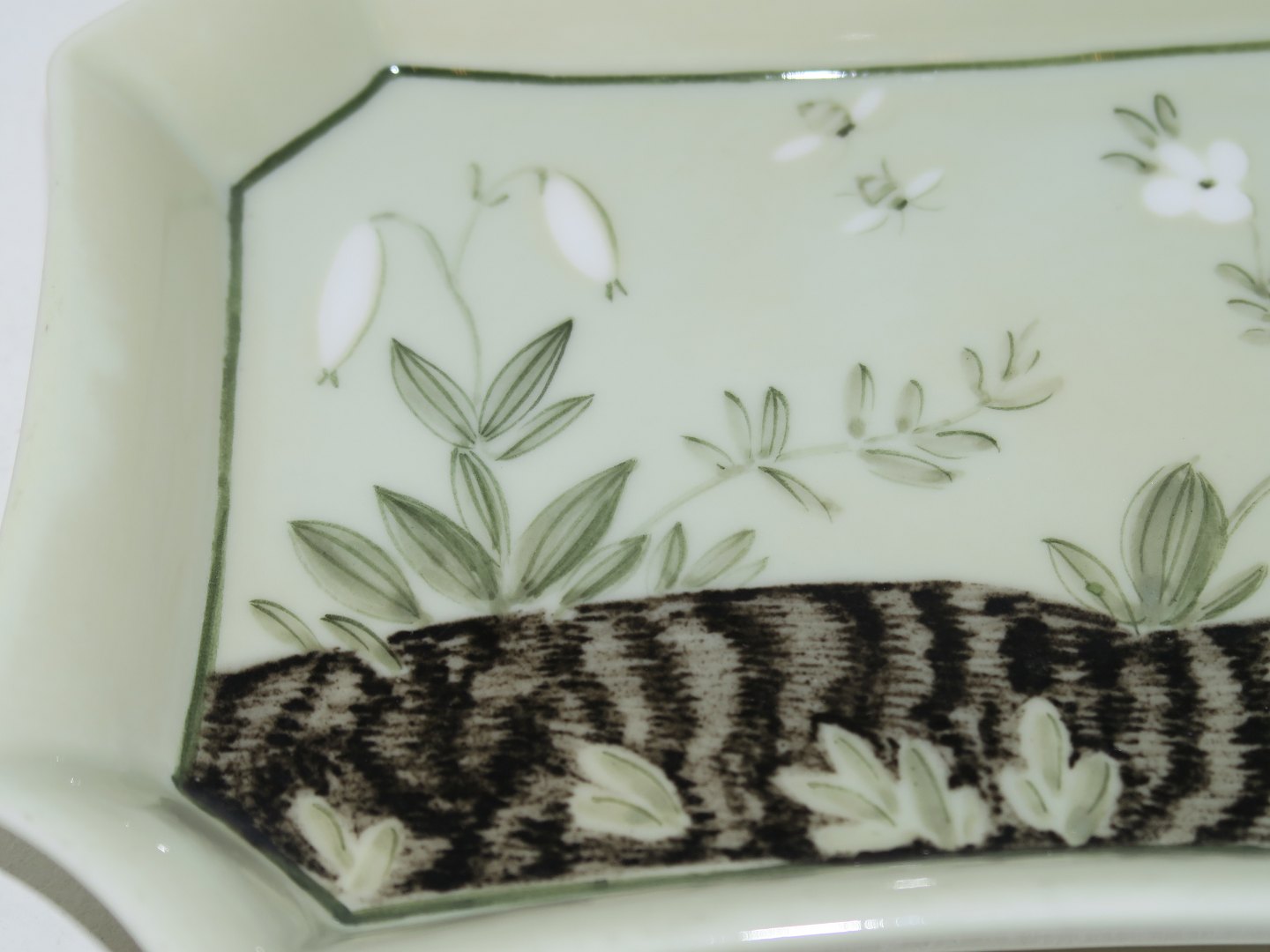 Unika asiet signeret af Thorkild Olsen og fra 1936. Dekoreret med bl.a. vintergæk og bier.