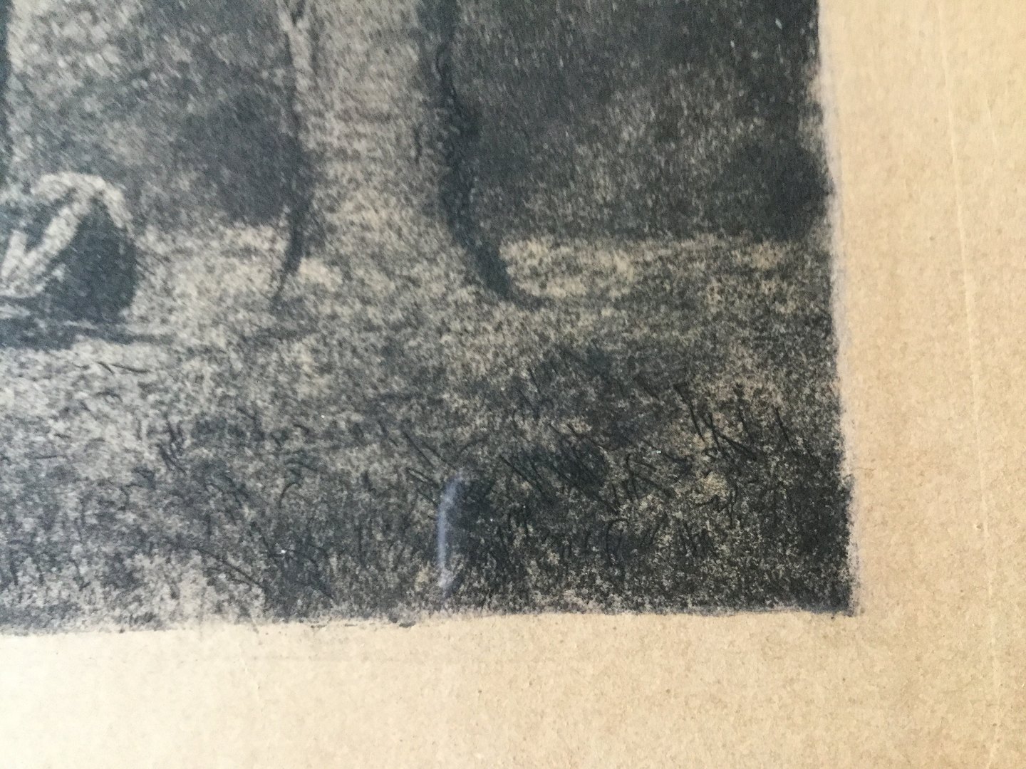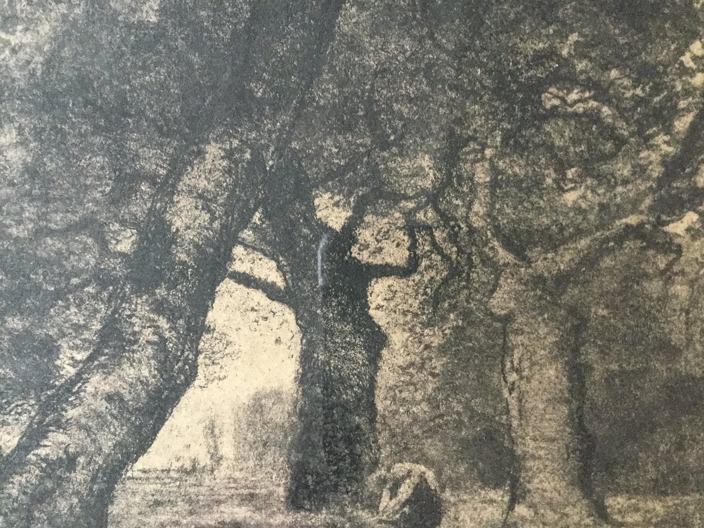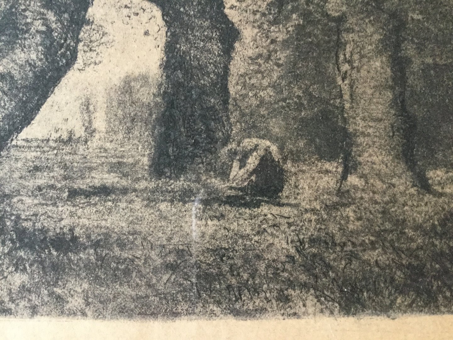 Radering af Otto Gampert - pige plukker blomster i skoven.