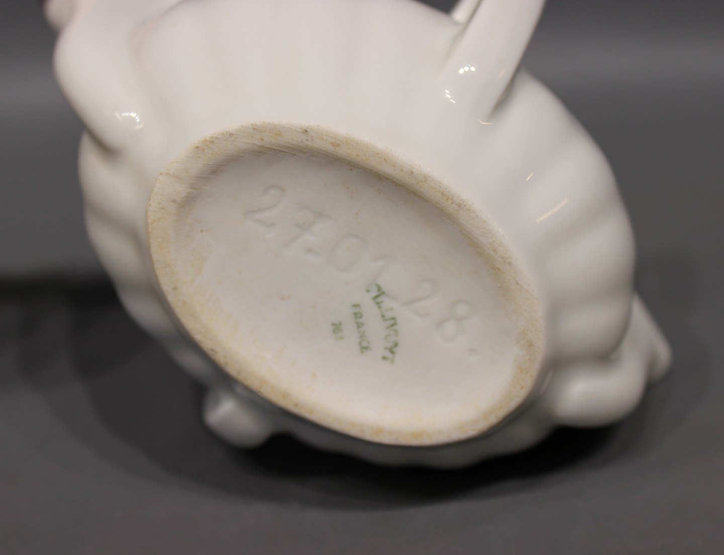 Fin lille hvid fransk porcelæns kande stemplet, 27.01.28.