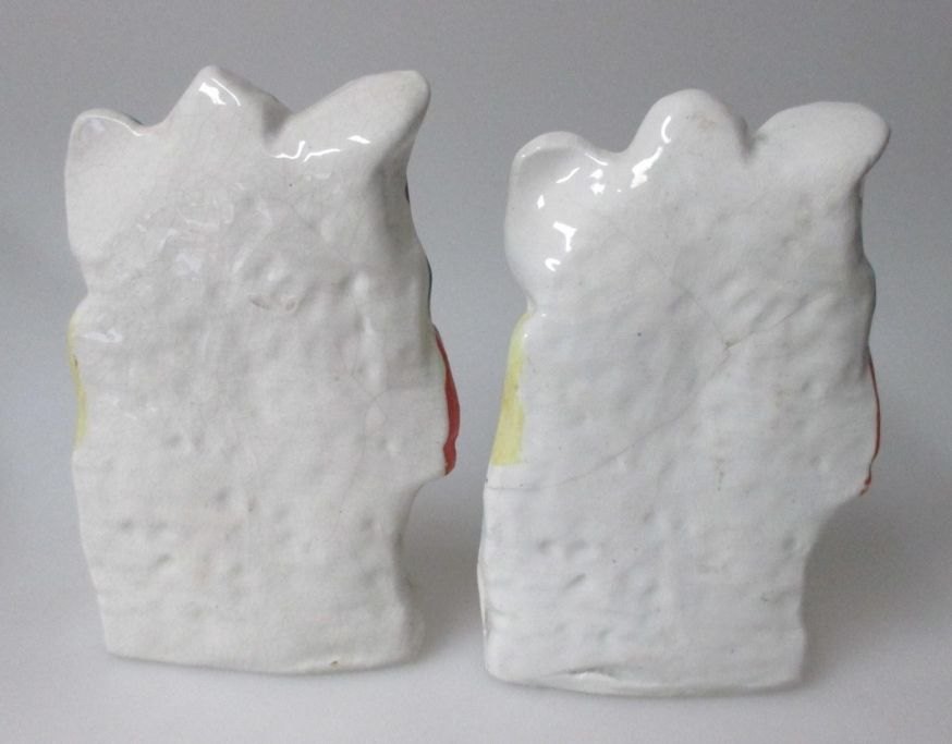 Par bemalede Staffordshire figurer i fajance med personer, der plukker æbler. ca. 1840.