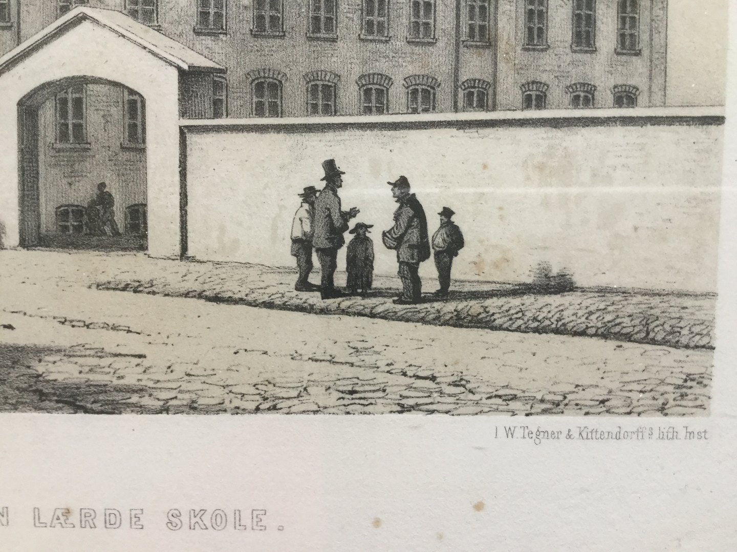 Litografi af Carl Neumann - Den Lærde Skole i Randers 1857.
