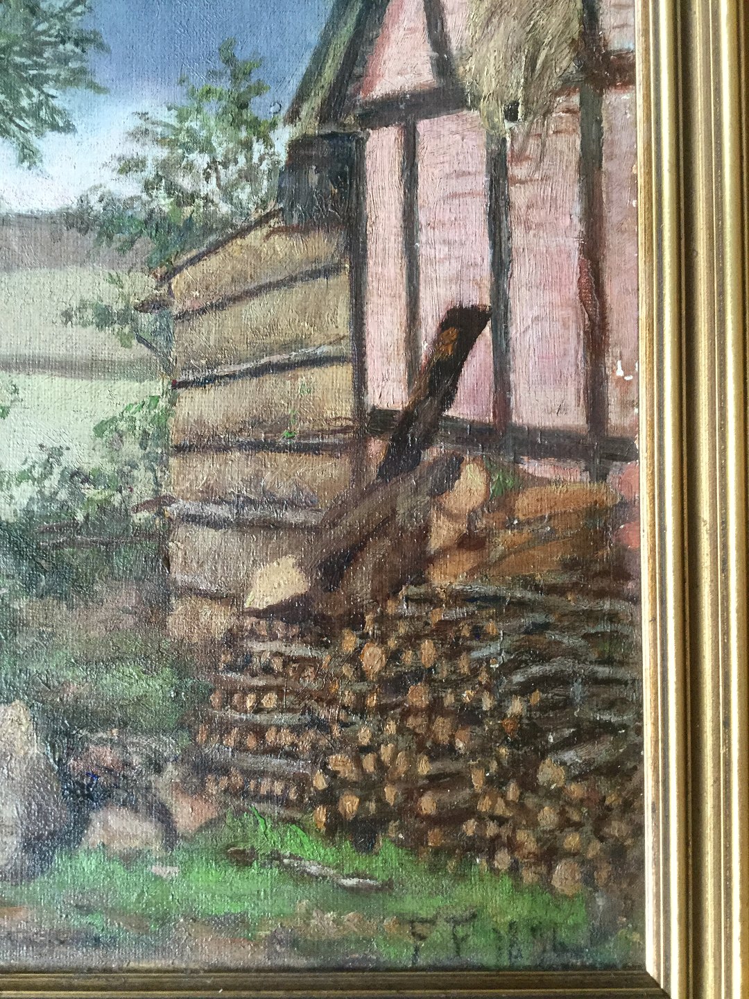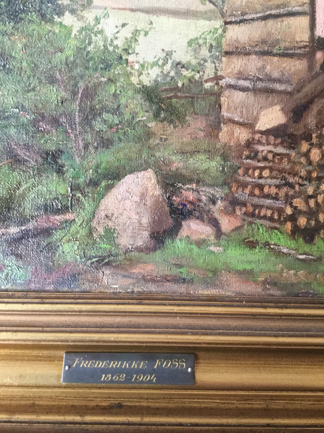 Maleri af Petra Frederikke Foss 1896 - Hus med brændestabel.