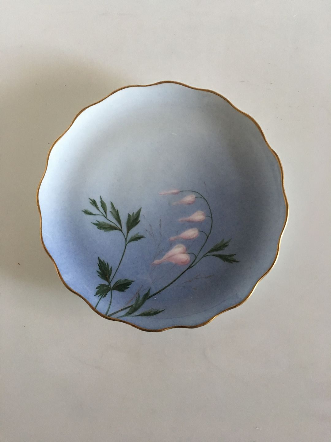 Bing & Grøndahl Kagetallerken med Blomsterdekoration og Guldkant. 17 cm diameter.