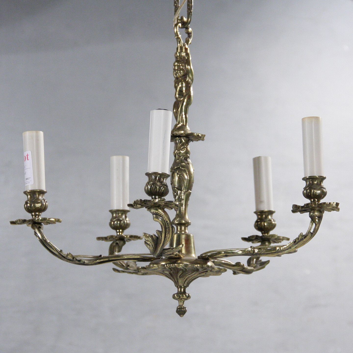 5-armet lysekrone i messing, 47 cm i diameter, 1950-1960