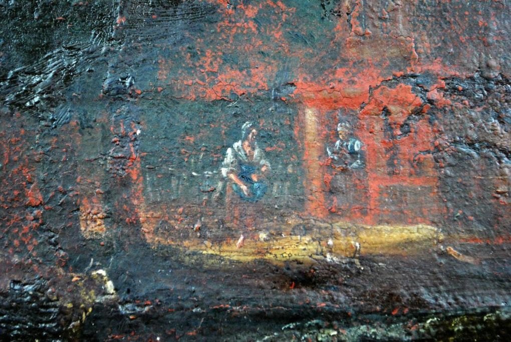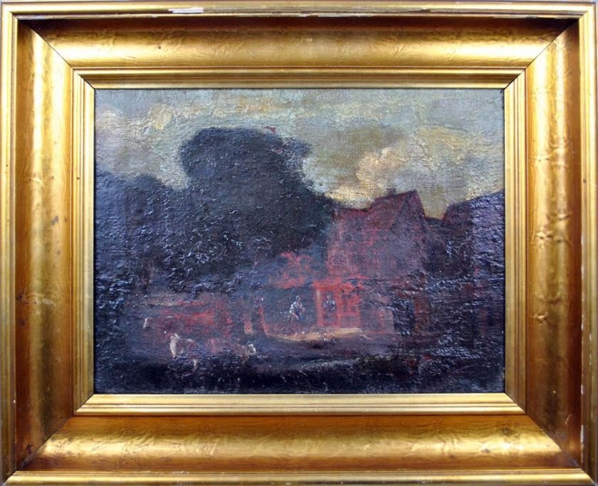 Hollansk kunstner, 17. årh. Scene fra et bondehus med personer og køer. Usigneret. 24 x 32 cm.