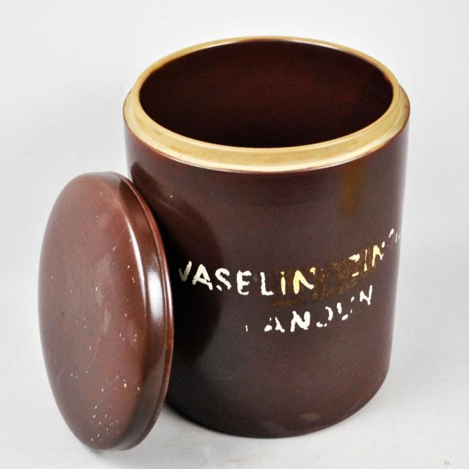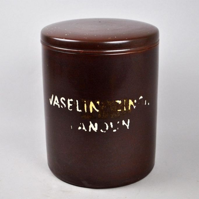 Apoteker krukke, brun stentøj, 19. årh. Vaseline.
