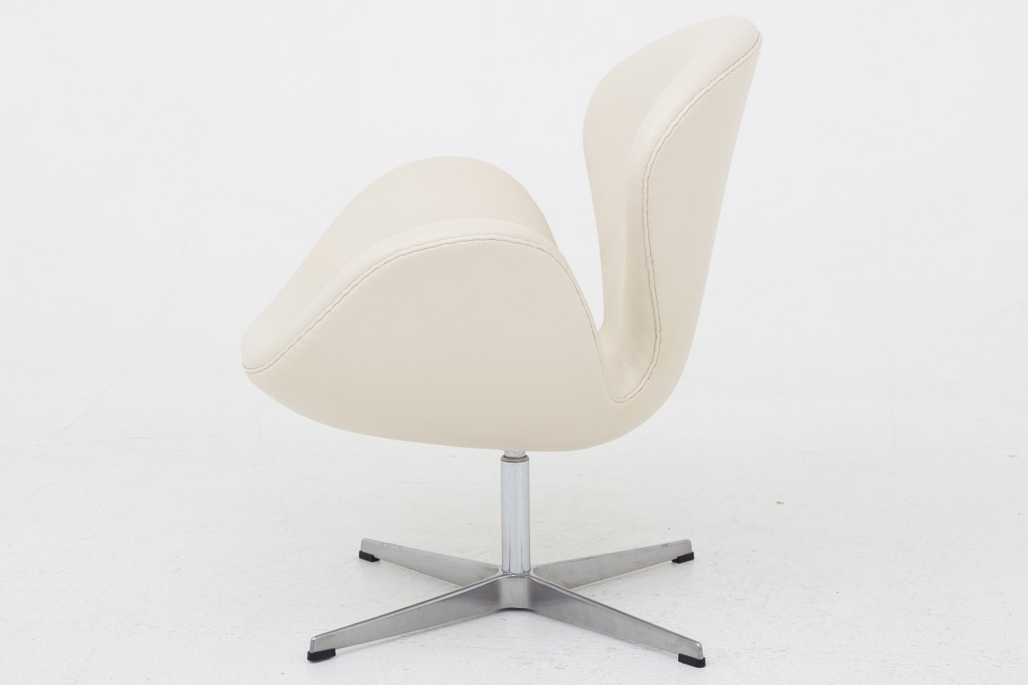 AJ 3320 - Nybetrukket "Svanen" i cremefarvet Paris Cream-læder med stel af stål. KLASSIK tilbyder polstring af Svanen med stof eller læder efter eget valg