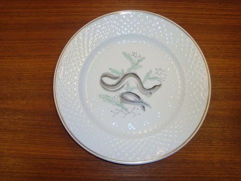 B & G Fisketallerken i Hotelporcelæn m. forsk. fiskemotiver D. 24,5 cm, 6 stk. på lager