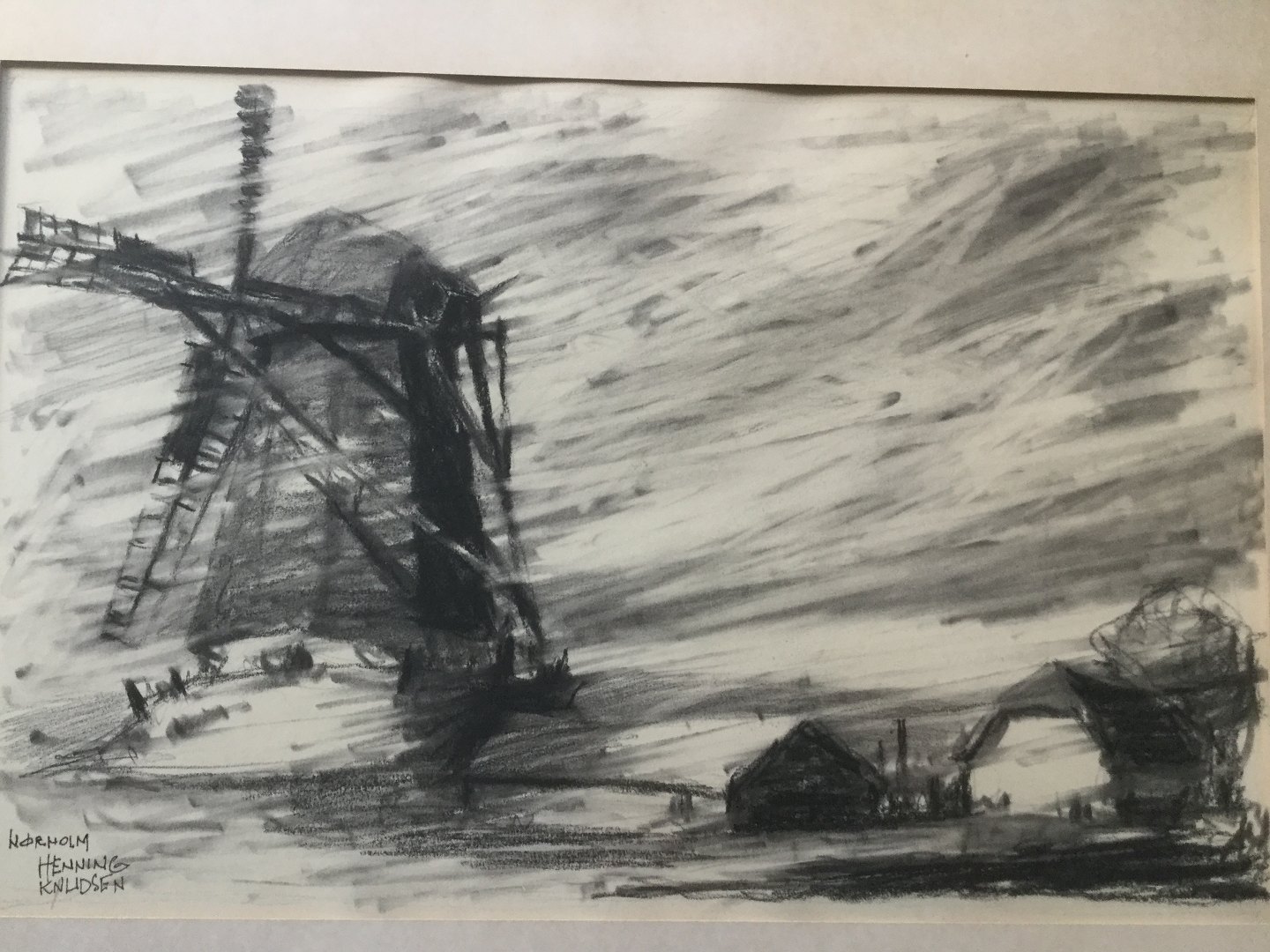 Tegning af Henning Knudsen - "Parti fra Nørholm Mølle"