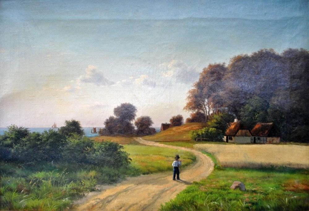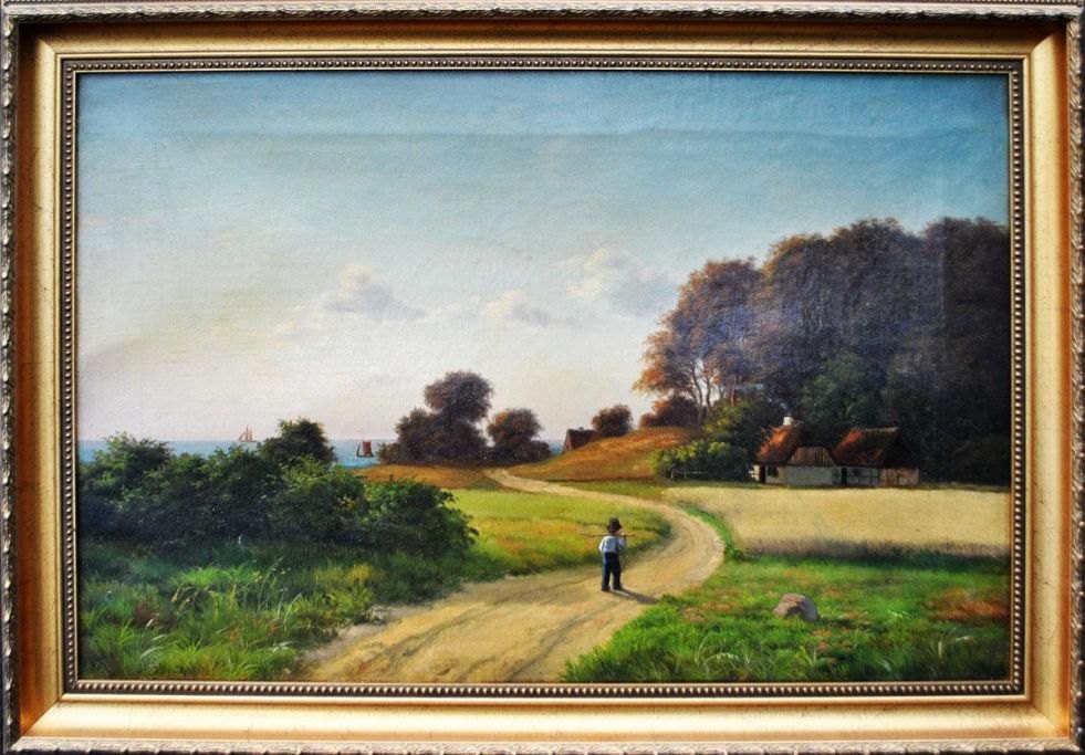 Danish artist, 19th century. A boy on a road. Oil on canvas. Unsigned. 40 x 60 cm.