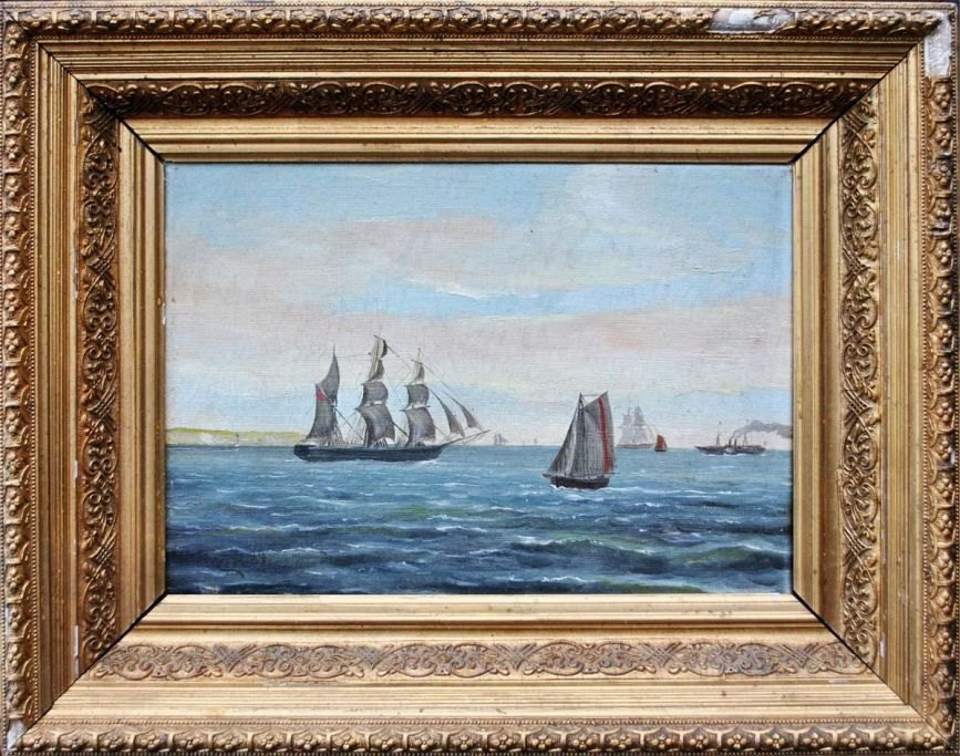 Danish artist, 19th century: Marine. Oil on canvas. Signeret: Monogram CH 89. 34 x 44 cm.