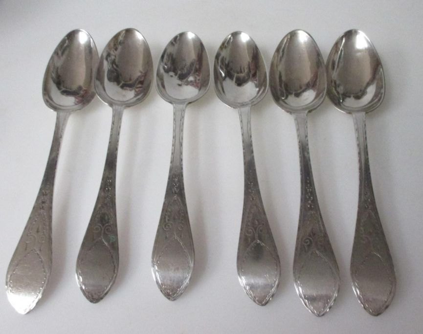 6 danske empire sølvskeer, Sølvsmed Christian N. Hosøe (1739 - 1812), København, Danmark.