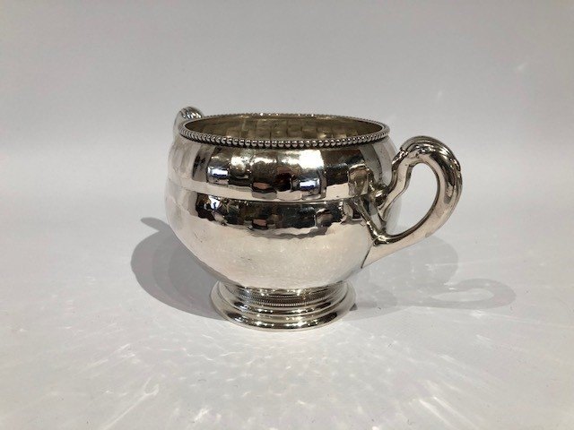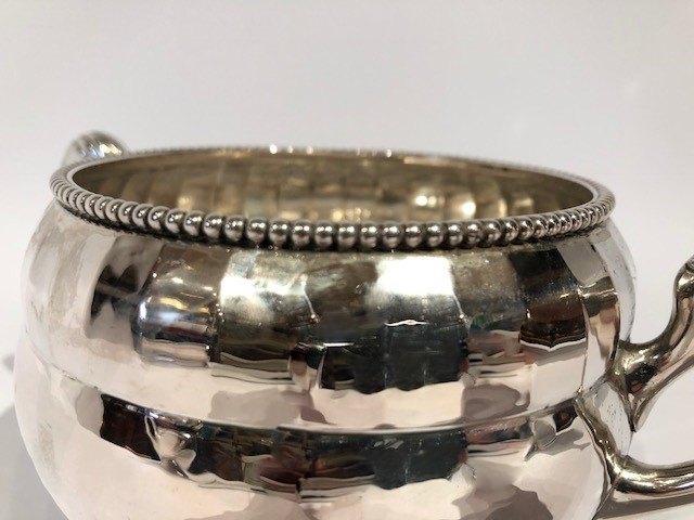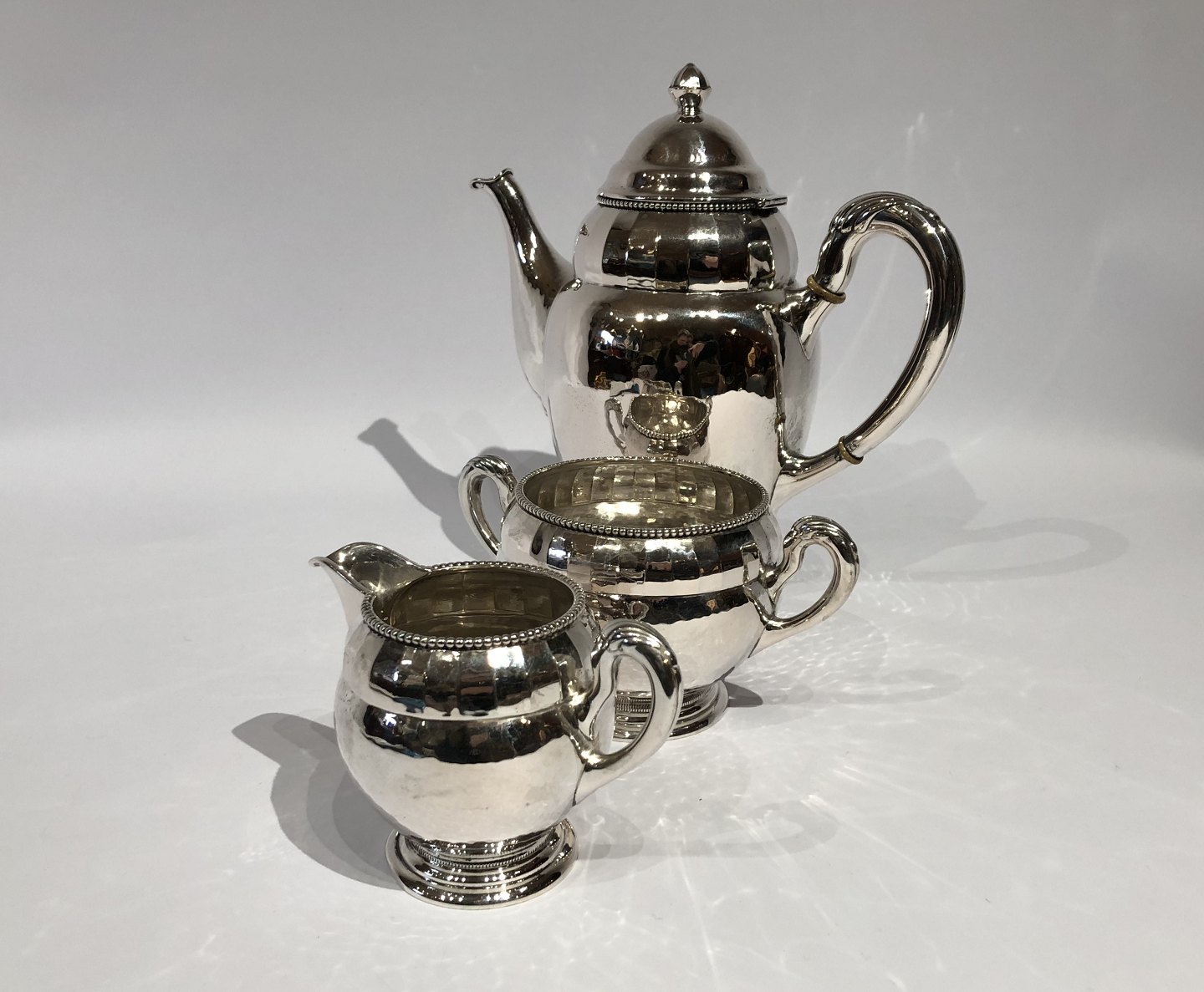 Kaffeservice bestående af kaffekande, sukkerskål og flødekande med fin perlekant og i tretårnet sølv.