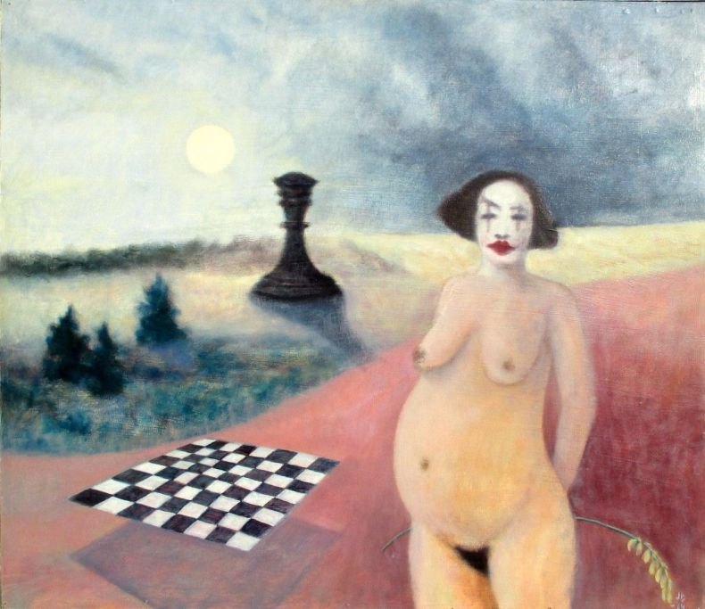 Bilgram, Jens (1937 - 2013) Danmark: En ny klovn på vej. Olie på plade. Signeret: Monogram JB 84. 63 x 71 cm.