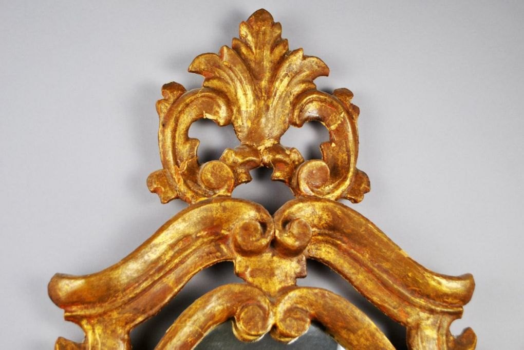 Italiensk forgyldt rococo spejl, 19. årh. H. 99 cm. B: 64 cm. Proveniens: Kunstnerparret Bertha Wegmann og N. V. Dorph.