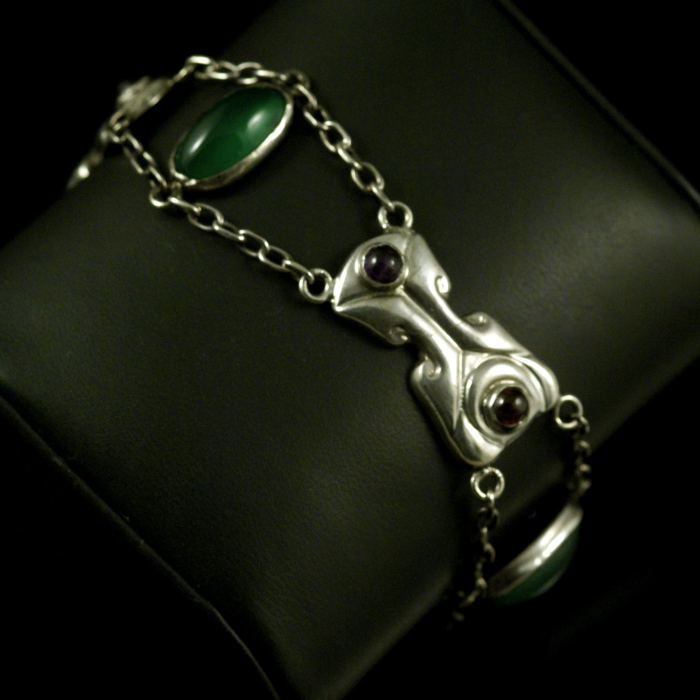 Mogens Ballins Eftf. Skønvirke Armbånd i Sølv med grøn agat, ametyst og granat.