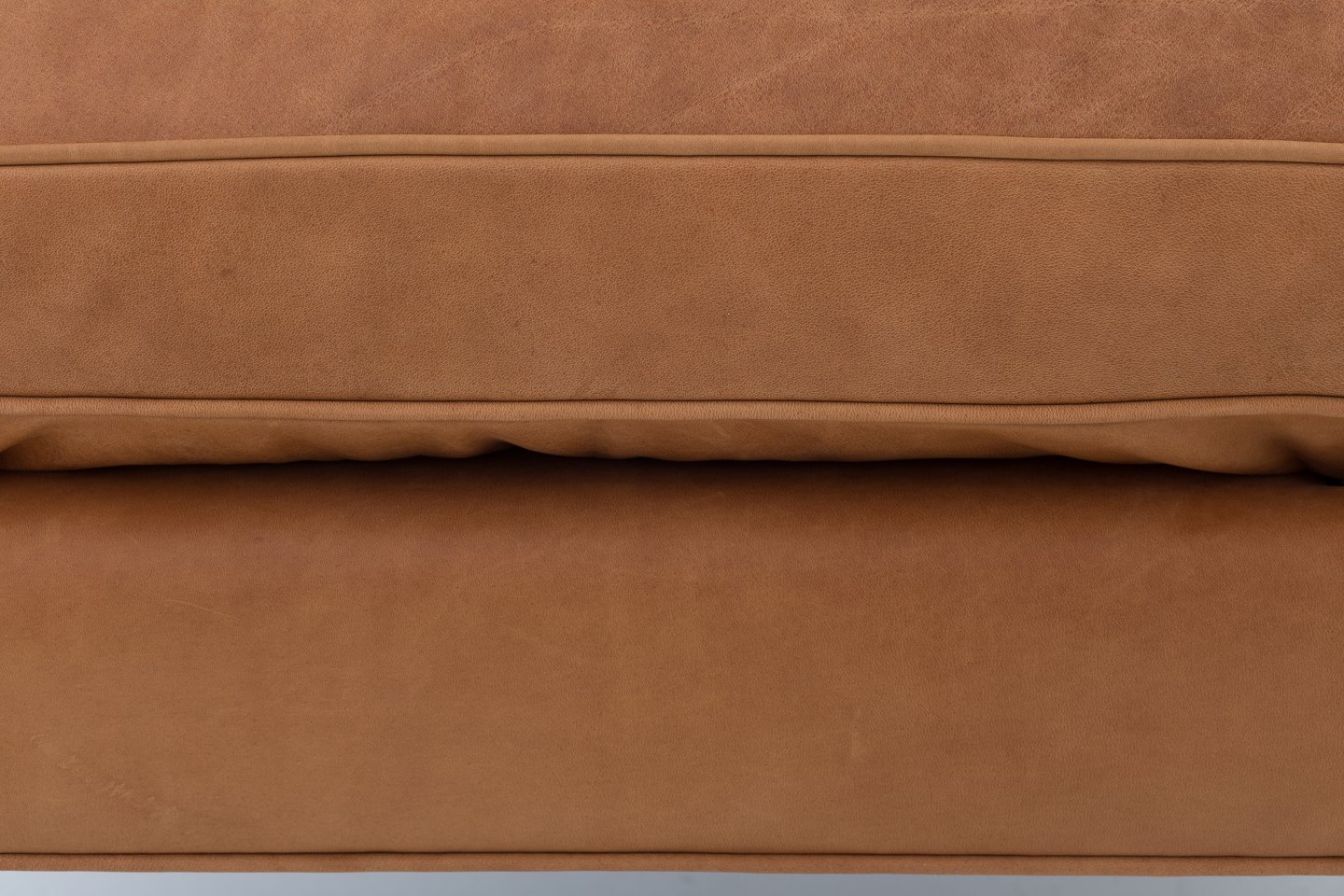 BM 2202 - Nybetrukket skammel i Dunes Cognac-læder med ben i teak. KLASSIK tilbyder polstring af skamlen med stof eller læder efter eget ønske