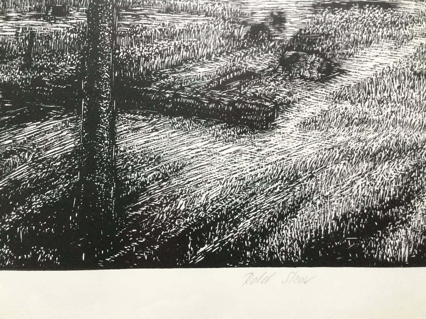 Linoleumssnit på papir.