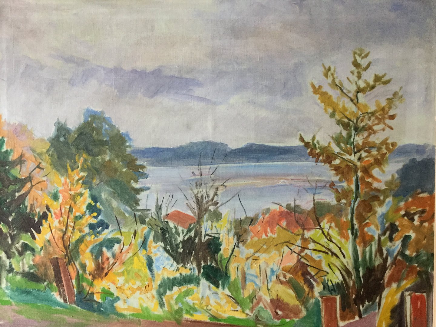 Maleri - Emil A. Schou - Parti fra Daugård Strand ved Vejle.