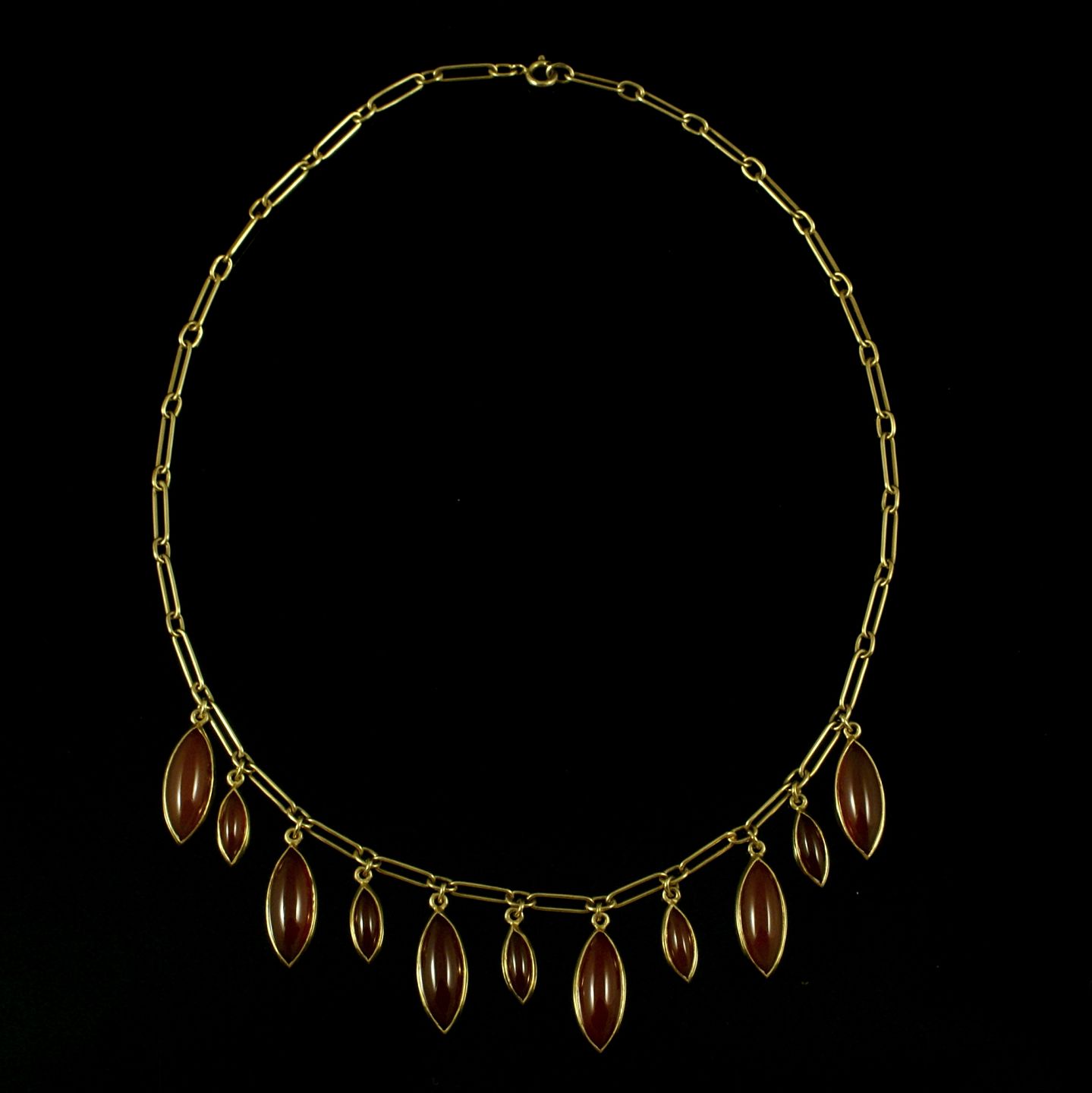 Karen Strand for A. Dragsted. Halskæde i 14k guld med Karneol