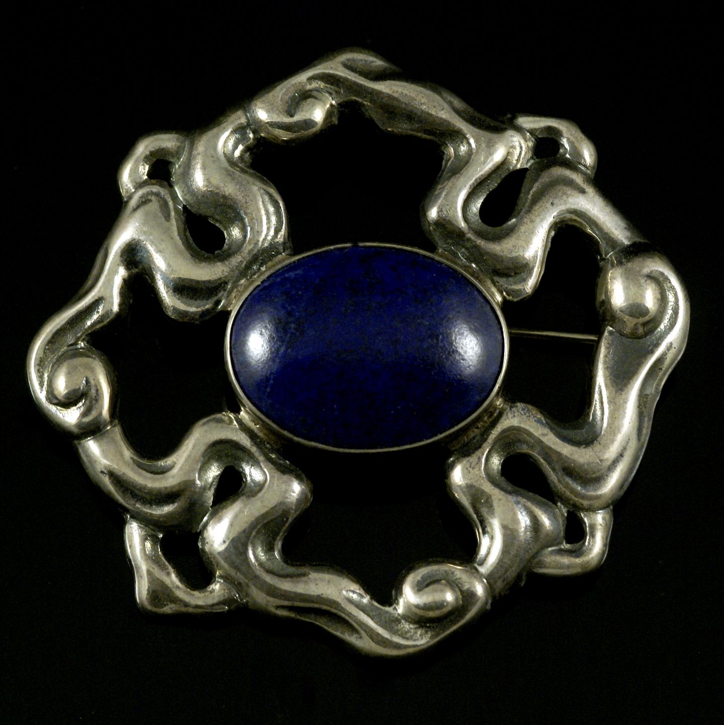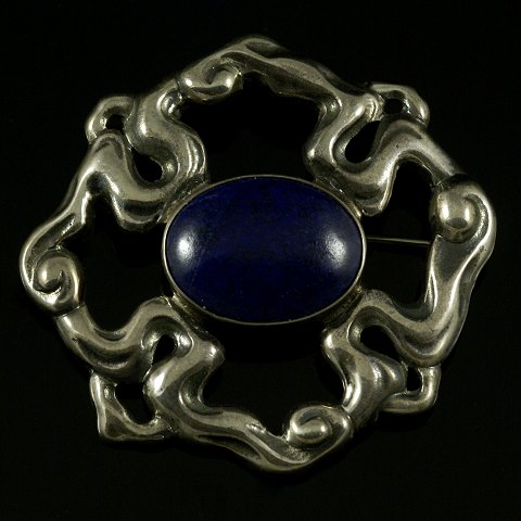 Carl M. Cohr. Skønvirke Broche i Sølv med Lapis Lazuli.
