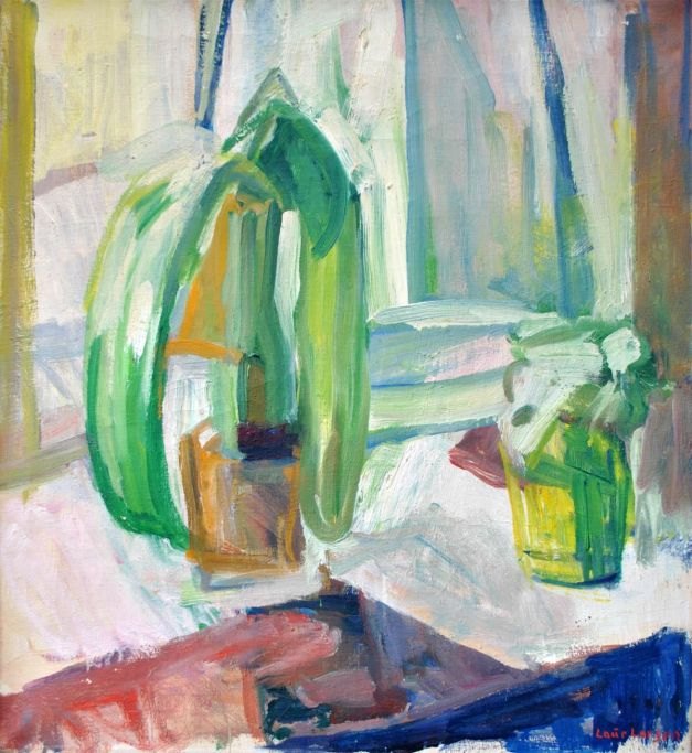 Larsen, Laurits (1898 - 1988) Danmark. Opstilling med potteplanter