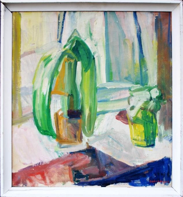 Larsen, Laurits (1898 - 1988) Danmark. Opstilling med potteplanter. Signeret: "Laur Larsen". Olie på lærred. 64 x 59 cm.
