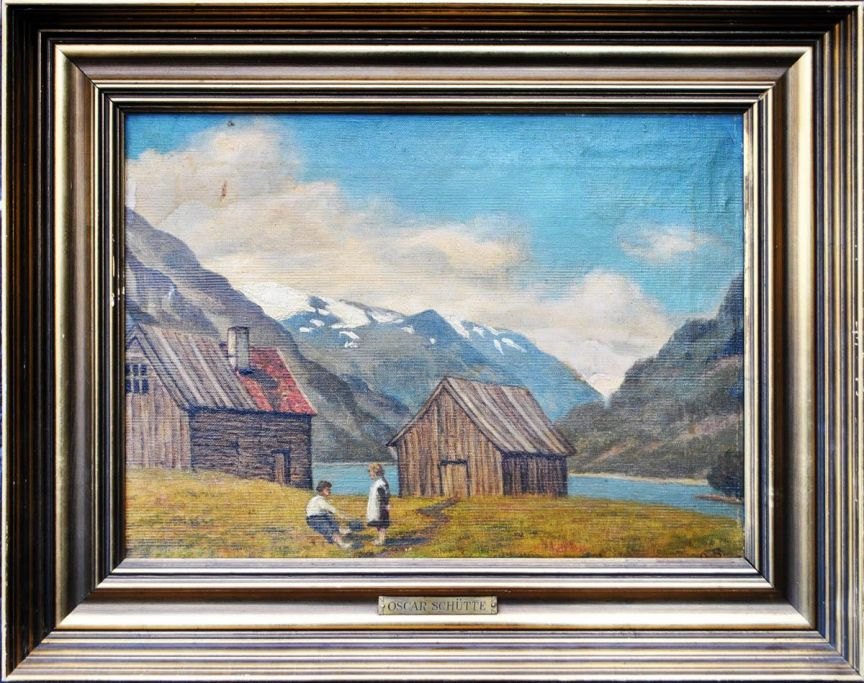 Schütte, Oscar (1837 - 1913) Danmark. To legende børn. Norge. Olie på lærred. Signeret.: O.S. 28 x 38 cm.