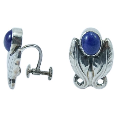 Georg Jensen; Øreringe/øreskruer af sterling sølv prydet med lapis lazuli. H. 2,3 cm. B. 1,5 cm.