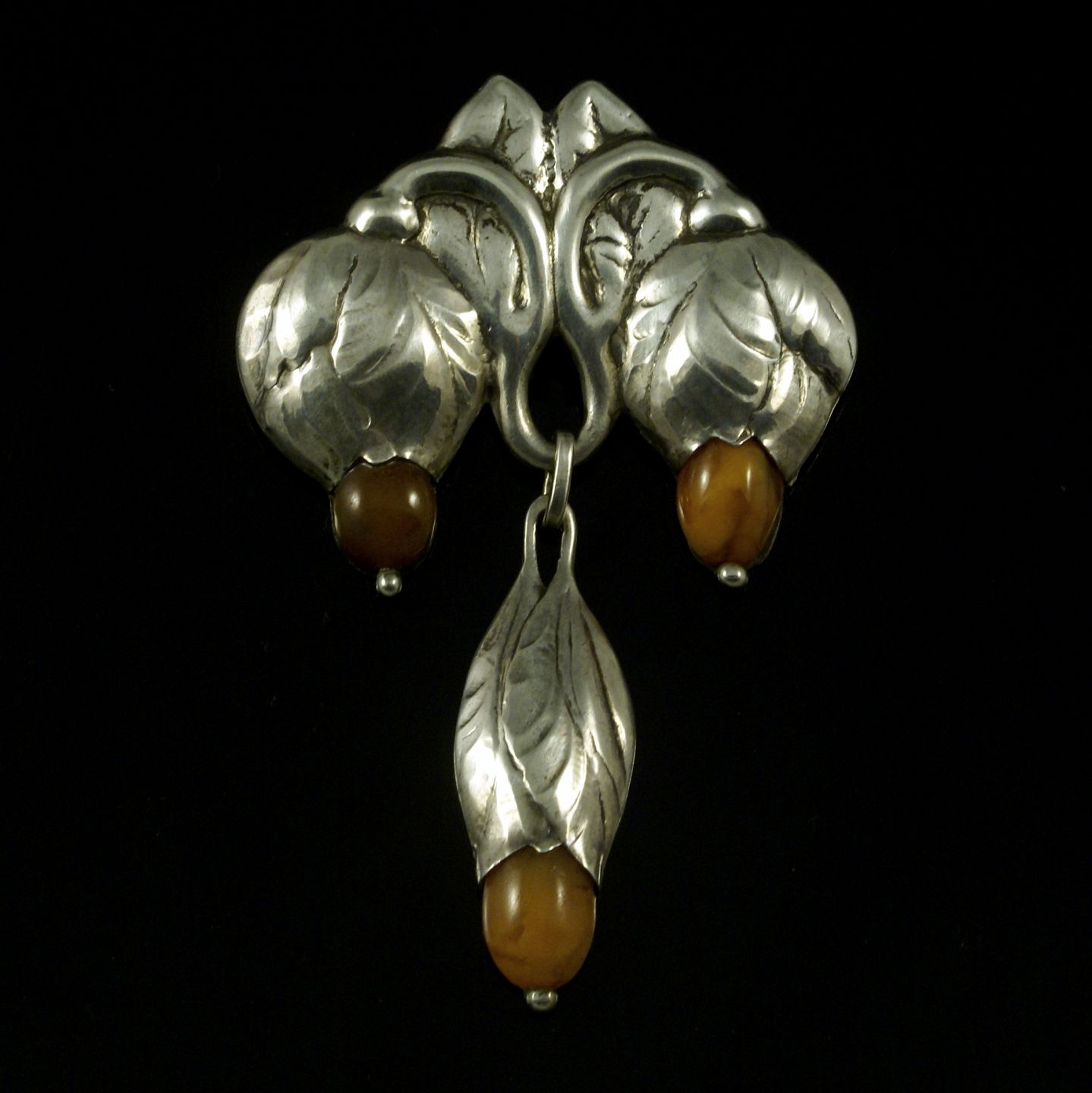 Evald Nielsen. Skønvirke Broche i Sølv med rav.