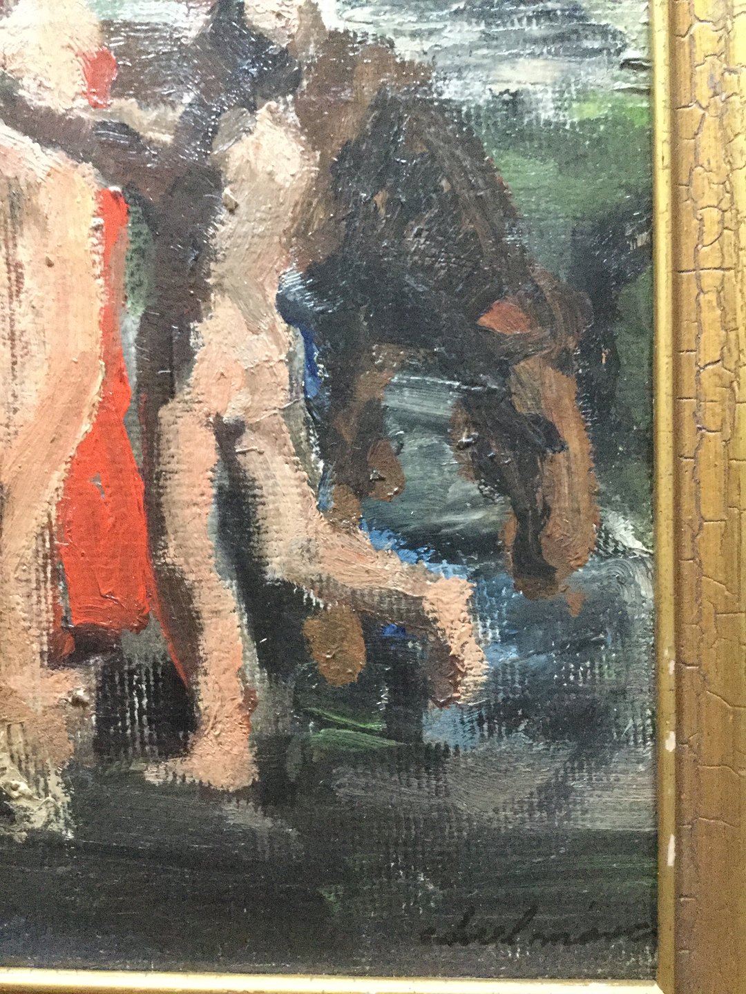 Olie på lærred monteret på plade - nyrenset.