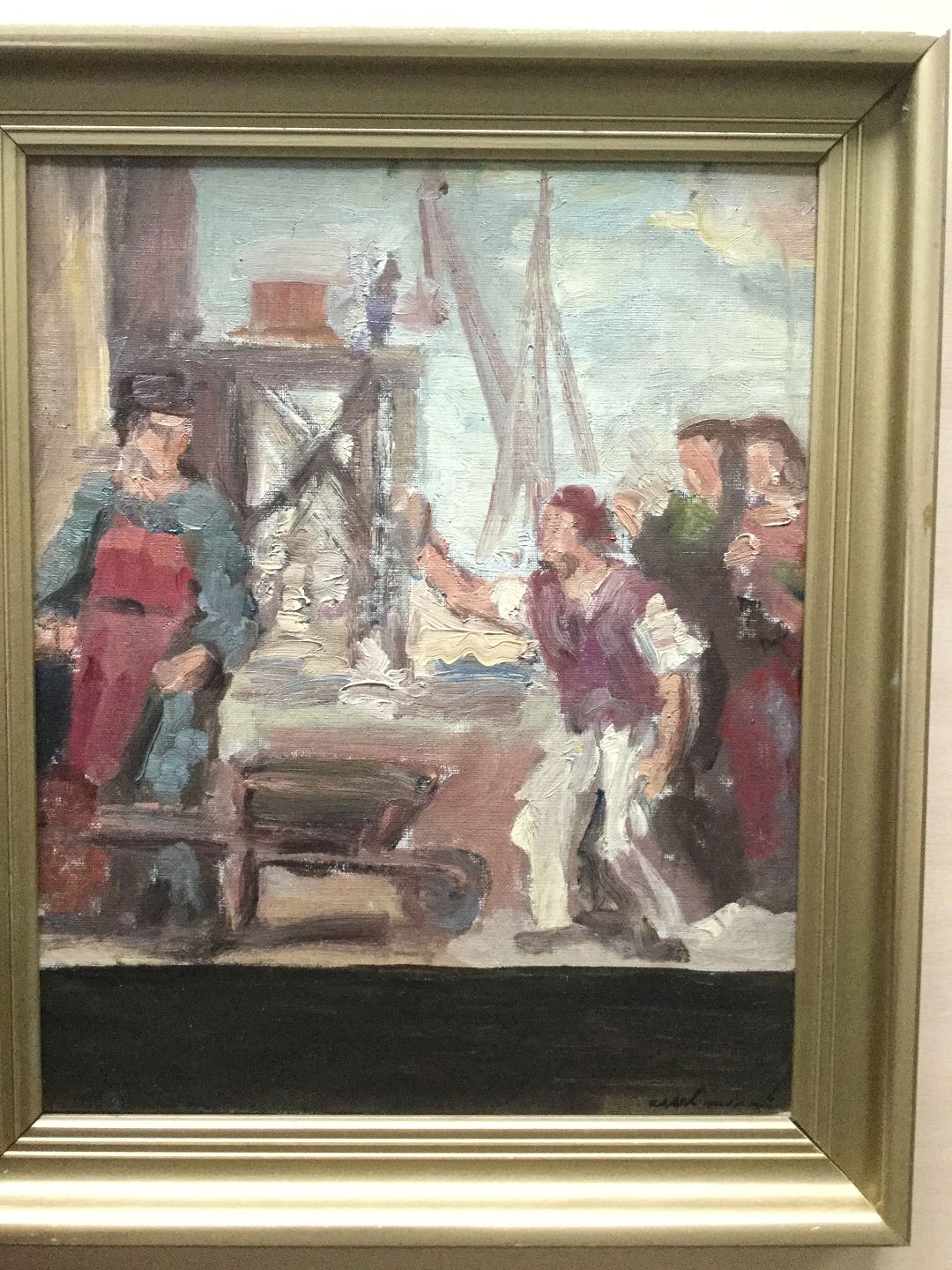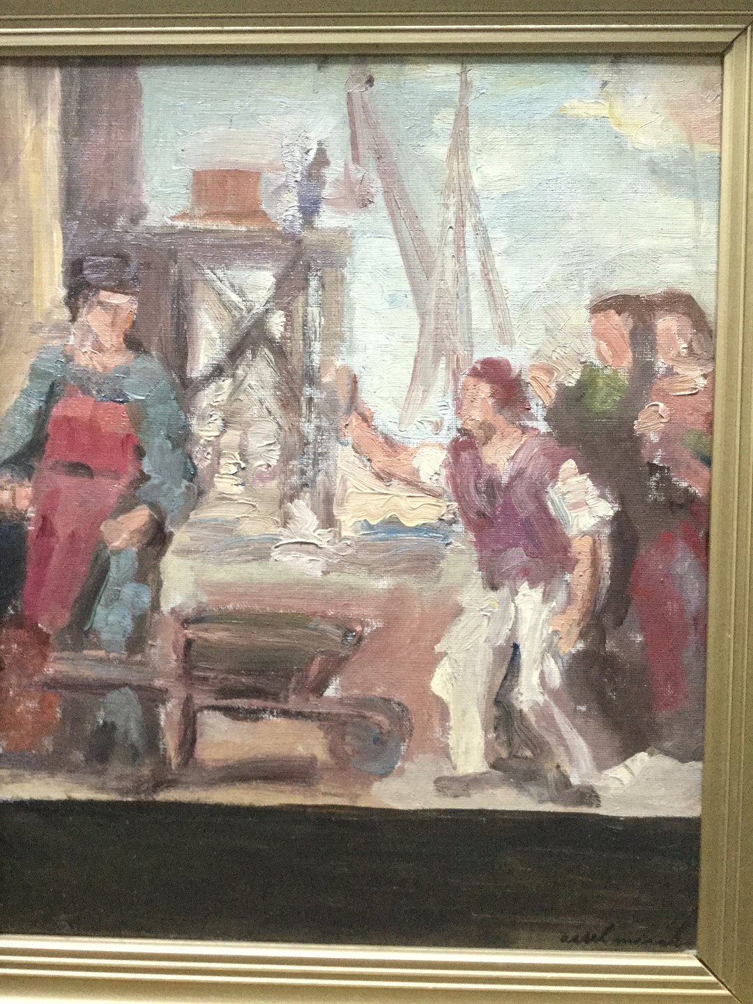 Fra Kalkbrænderihavnen med arbejdere - skitse til større maleri.