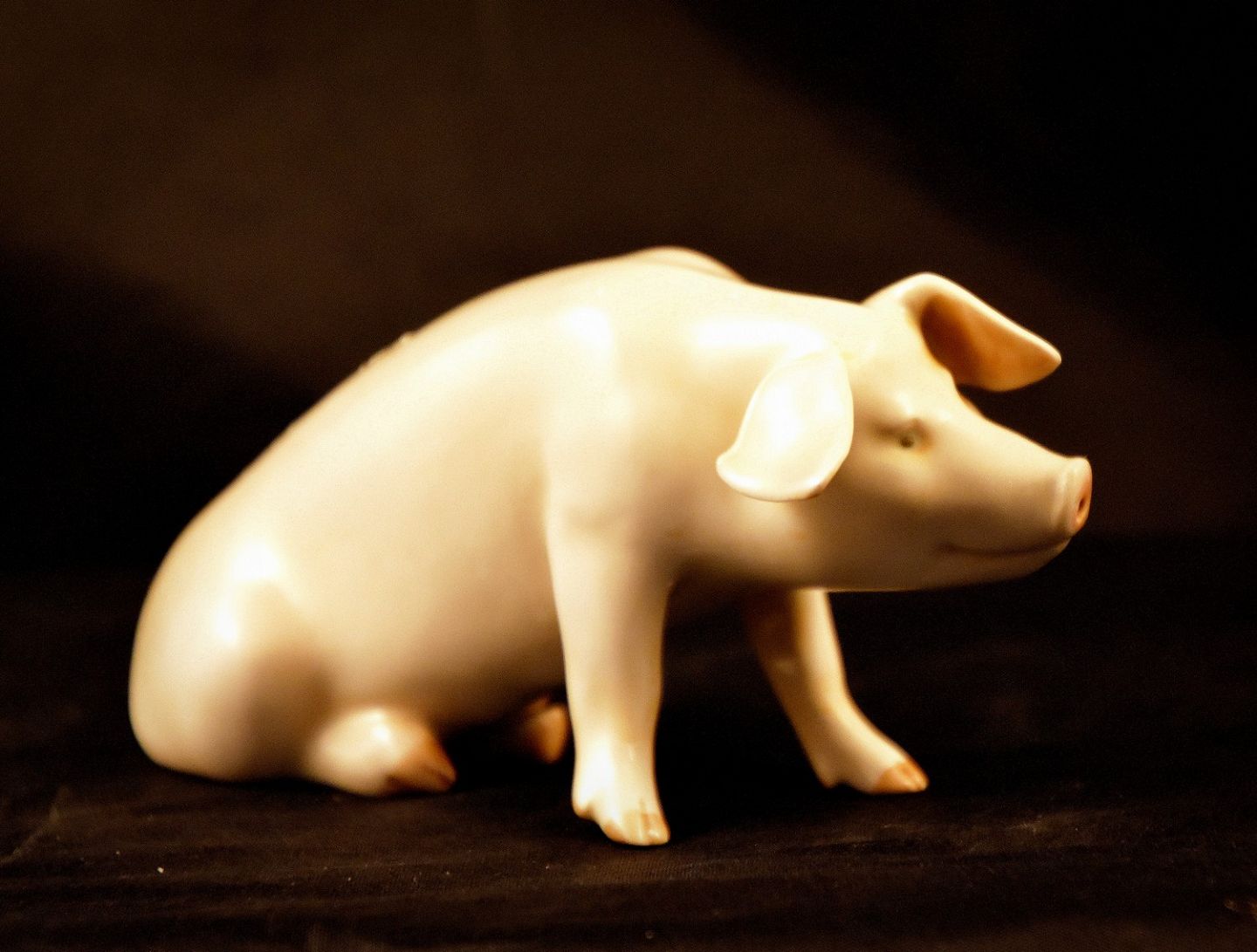 Royal Copenhagen figur Siddende Gris (1400) 1914-1964 Hafnia. Designet af Erik Nielsen KGL/RC