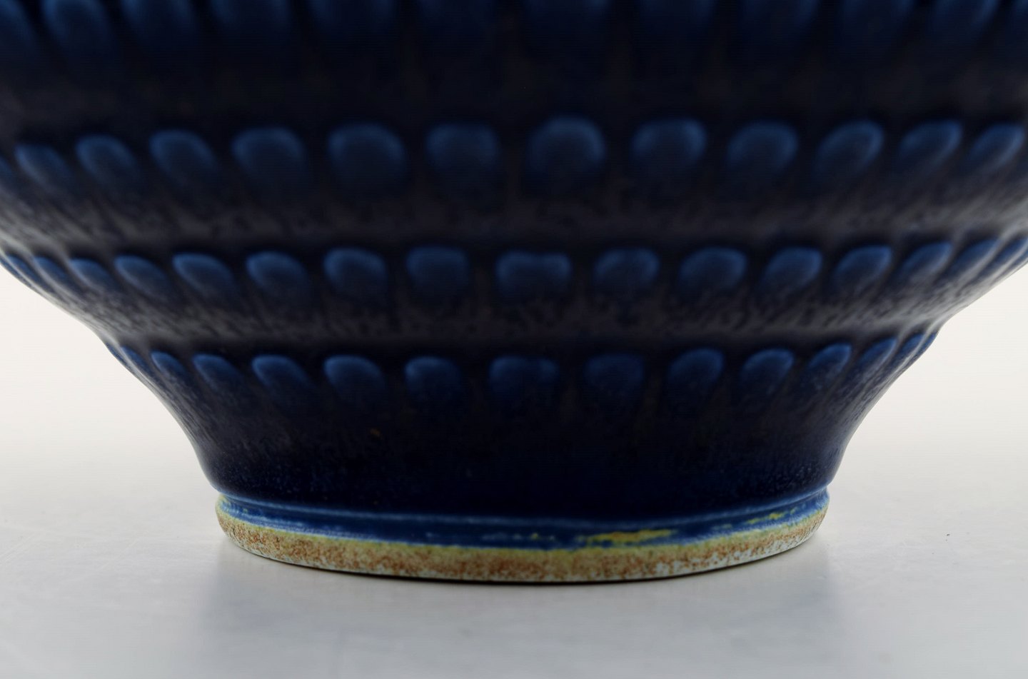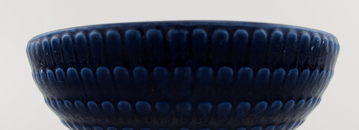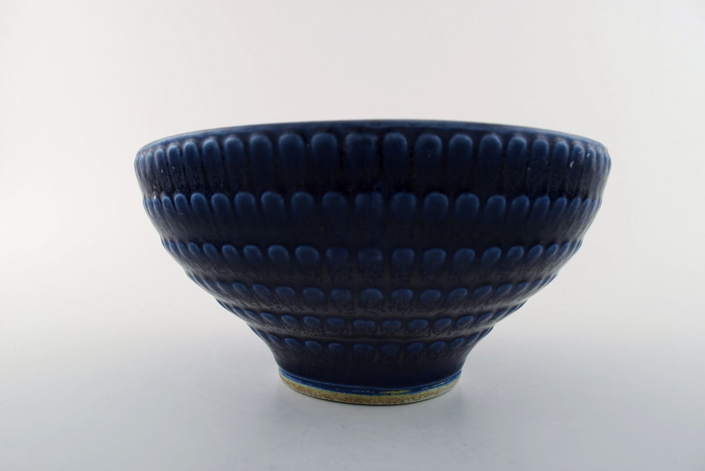 Gustavsberg, Wilhelm Kåge, Stor keramikskål i smuk mørkeblå glasur.