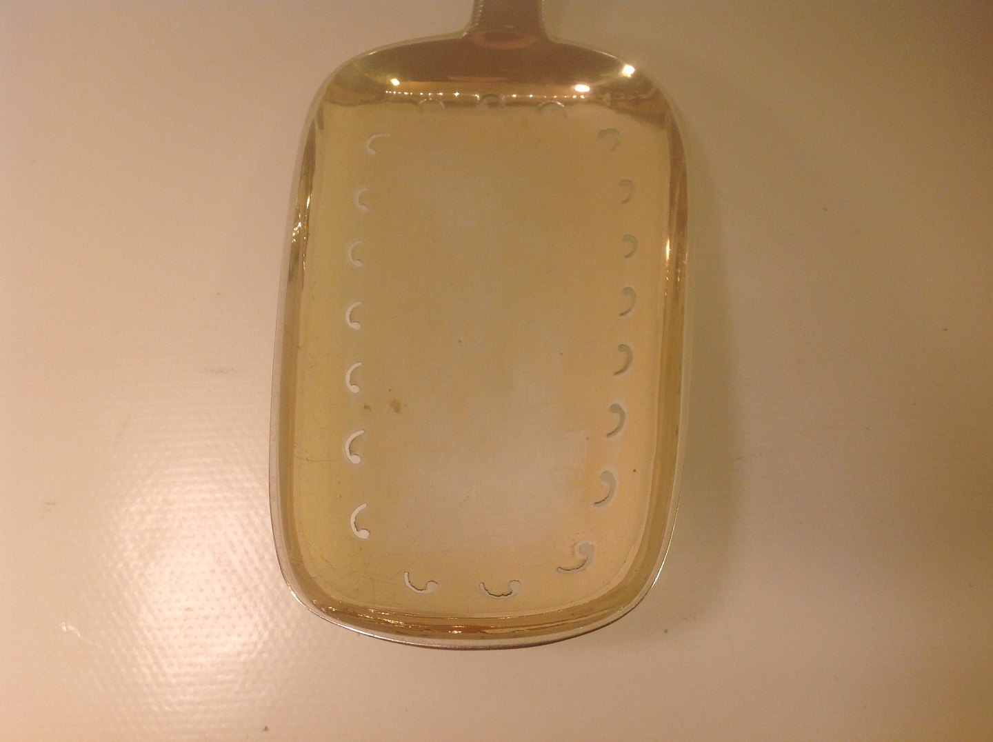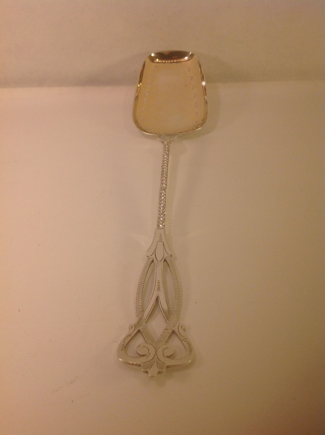 Jordbær ske med snoet skaft og forgyldt i laffen.