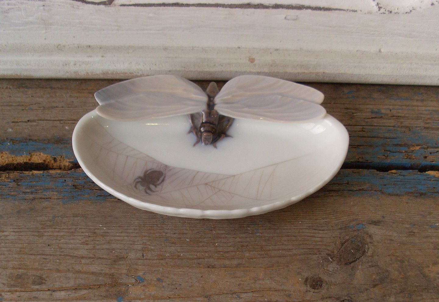 Royal Copenhagen Art Nouveau skål med guldsmed & edderkop