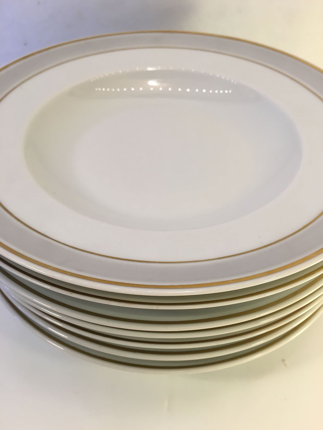 Tiber Dyb middag 21 cm. Hvid med Lysegrå Bord og Guldkant.