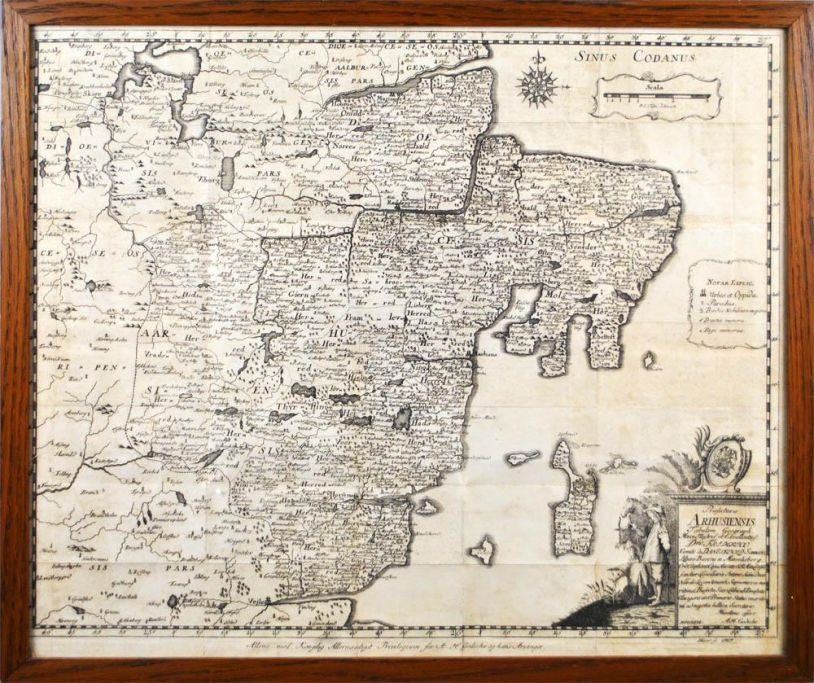 Haas, Jonas (1720 - 1775) Danmark. Kort over Aarhus Stift. Kobberstik. 45 x 55 cm.