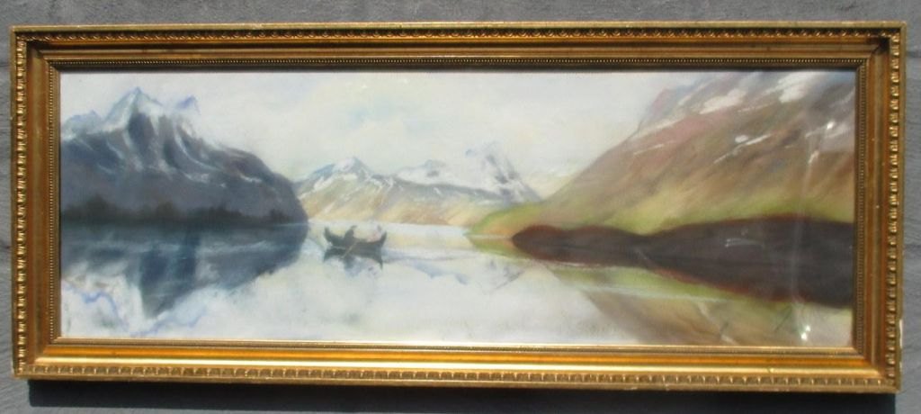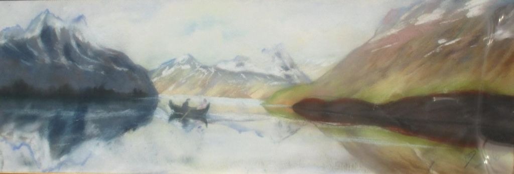 Böhme, Karl Theodor (1866 - 1939) Tyskland.: En båd på vandet, Norge. Pastel på papir. Signeret 1906. 19 x 56 cm.