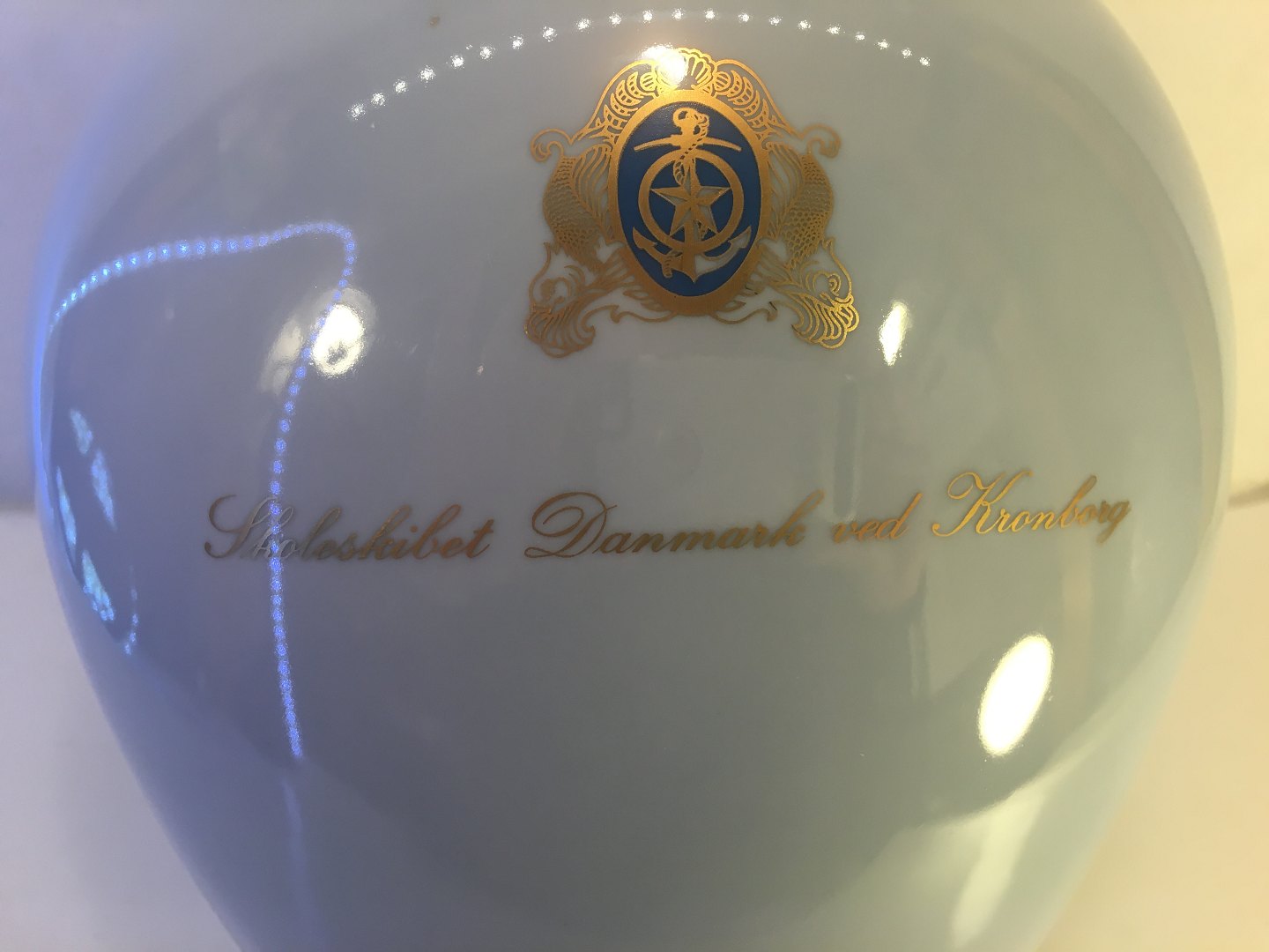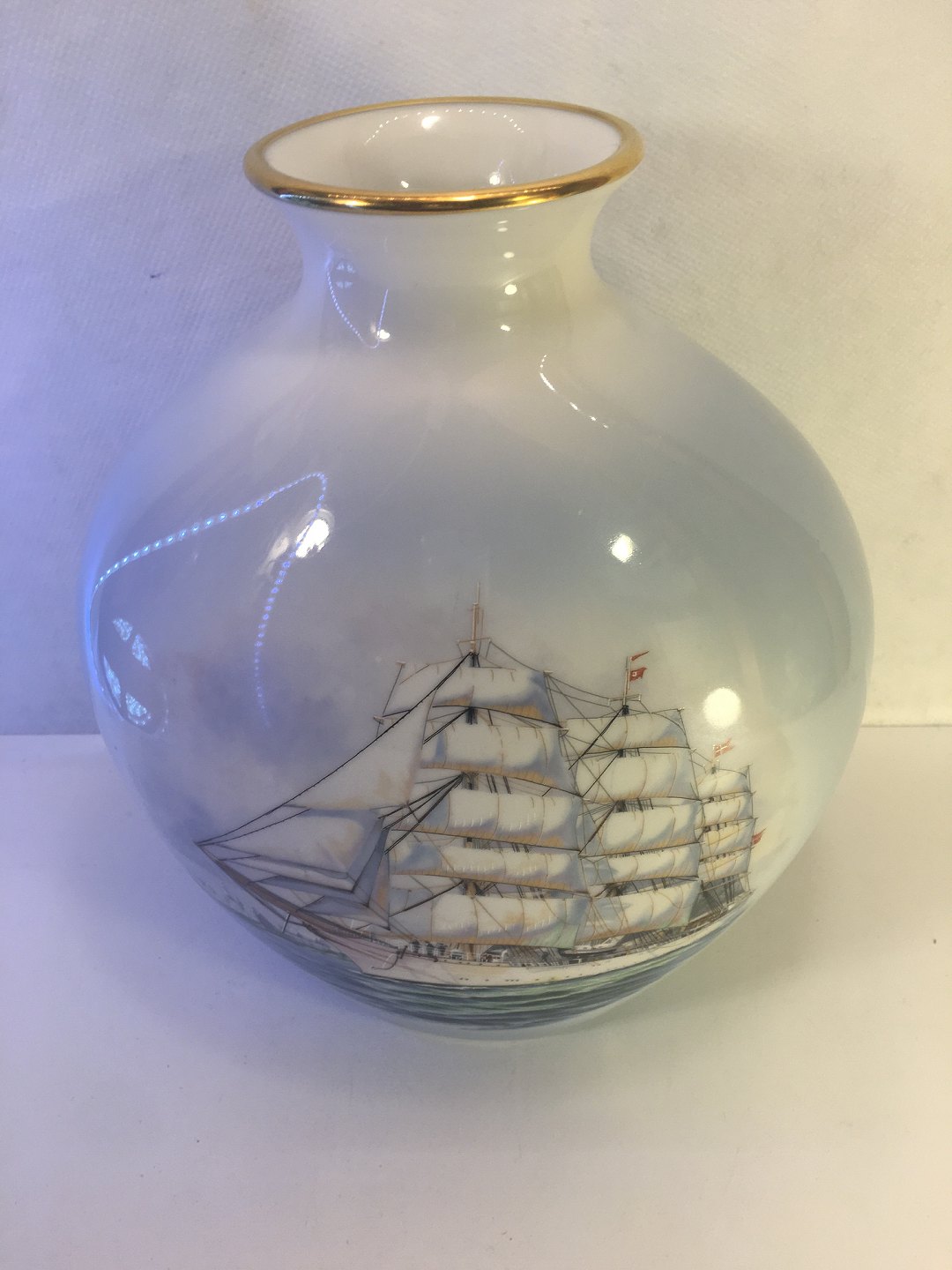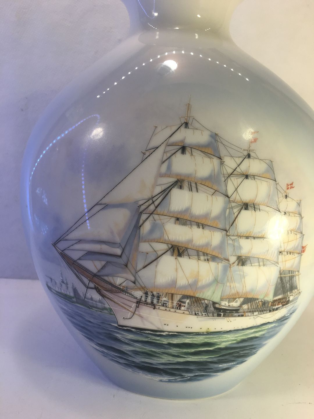 Stor flot Vase med skibsmotiv af skoleskibet Danmark ved kronborg