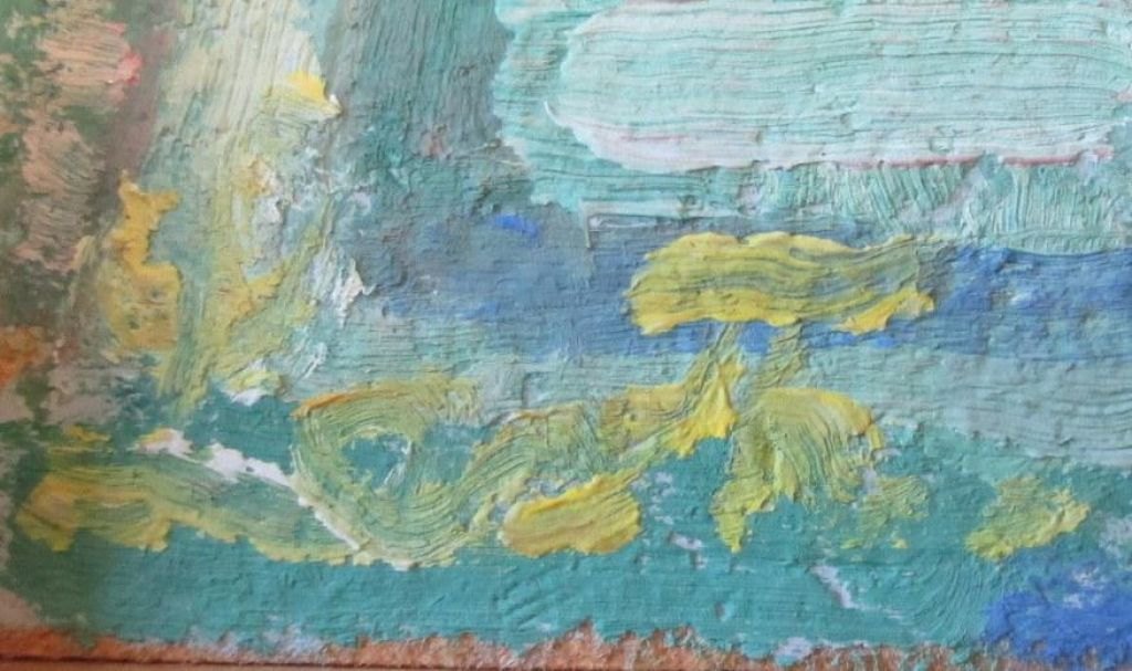 Thellefsen, Leo (1909 - 1997) Danmark: Grøn landskab. Olie på plade. Signeret. 13 x 16,5 cm.
