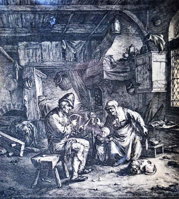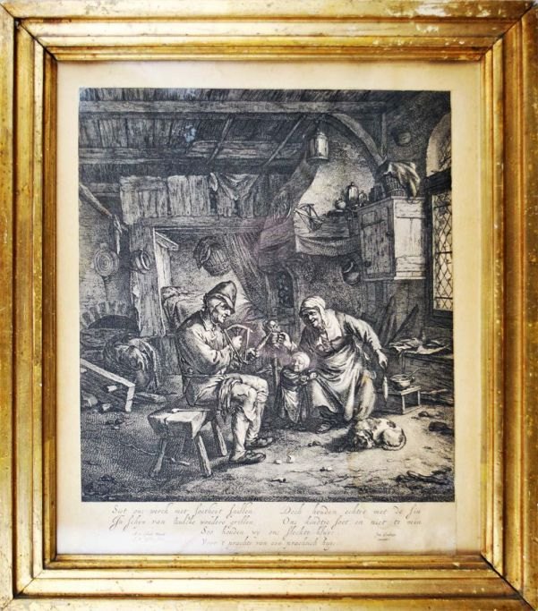 Ostade, Adriaen van (1610 - 1685) - efter - Holland: Køkken scene. Kobberstik. Signeret i trykket. 39 x 34cm.
