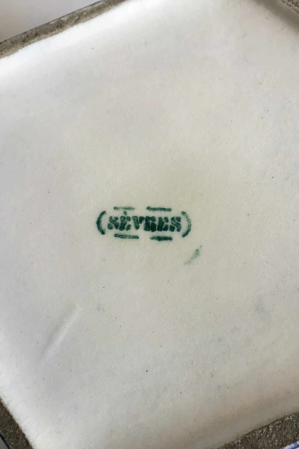 Sèvres Rombeformet blå porcelænsæske med tinmontering og opal/opallignende sten