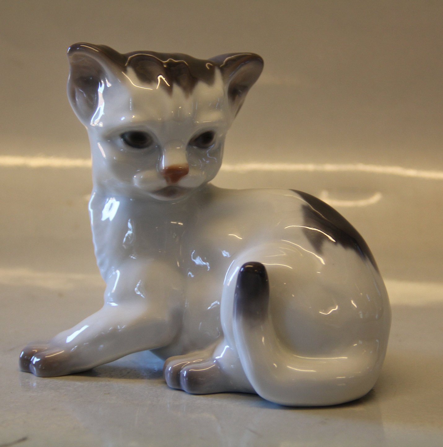 Sjælden 08 Kat 12 x 14 cm Lyngby figur. Stemplet med Kongelig Krone, Handpainted, Copenhagen, Made in Denmark. Også kendt som Københavns Porcelænsmaleri (KPM)