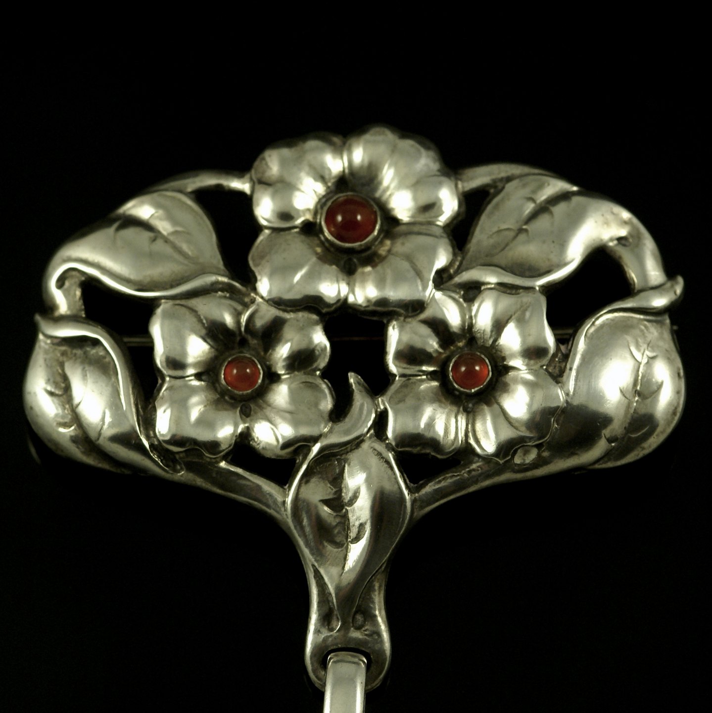 Thyra Vieth 1866-1938. Skønvirke Broche i Sølv med karneol.