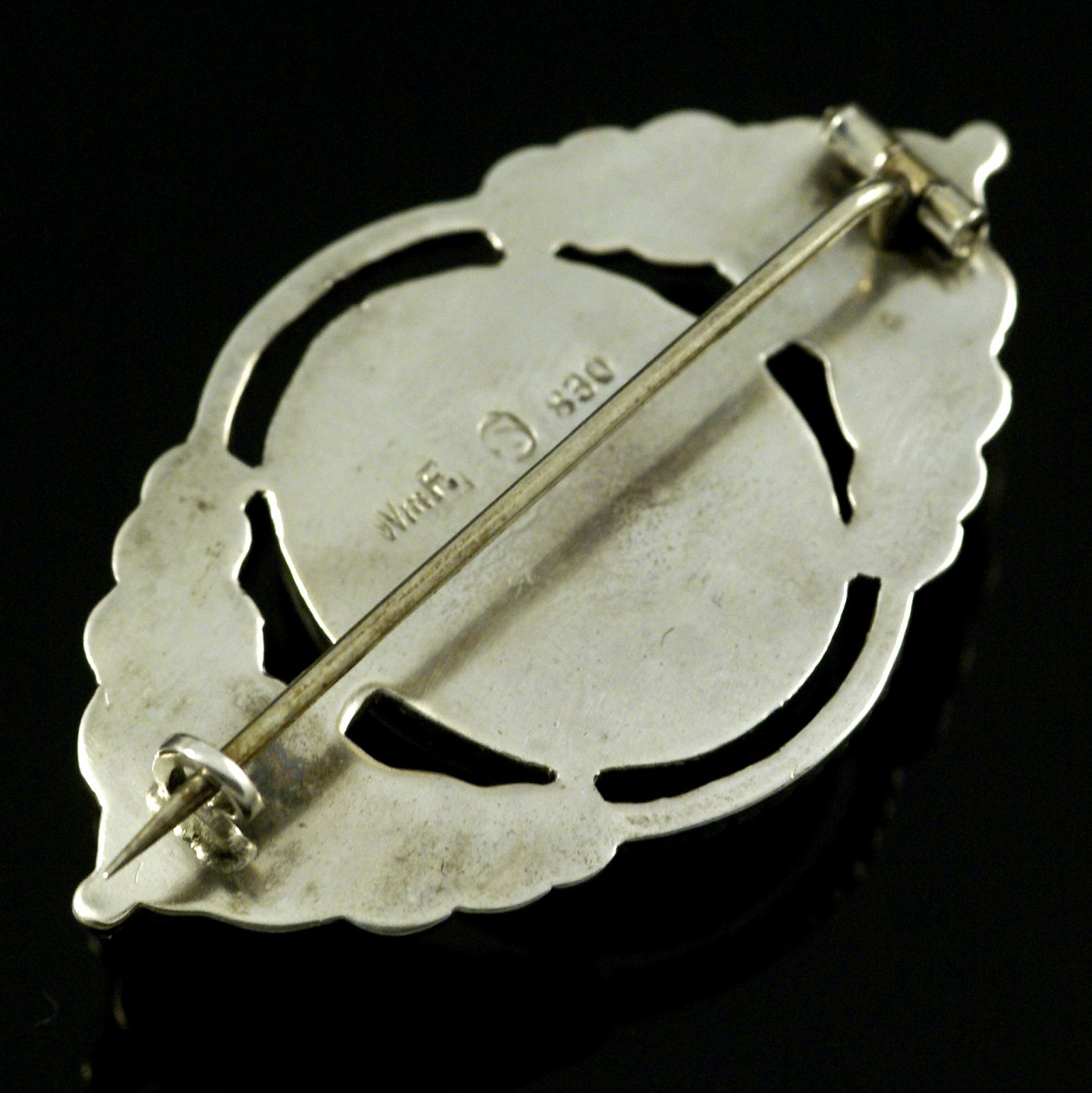 William Fuglede 1907 - 1937. Art Nouveau Silver Brooch with Amber and Green Agate.
