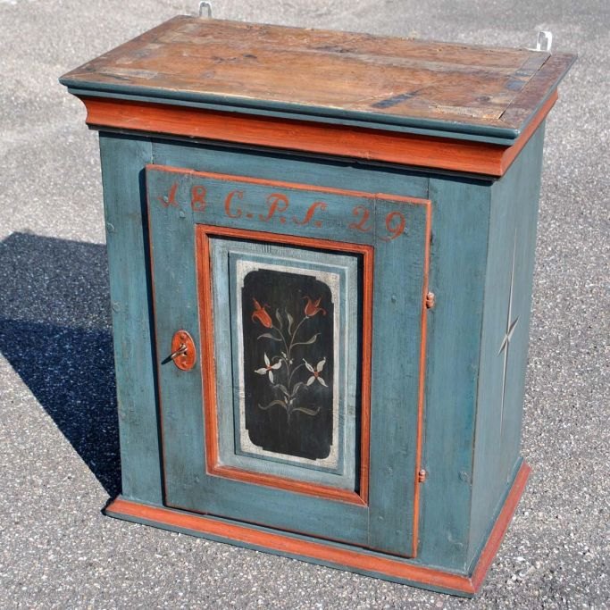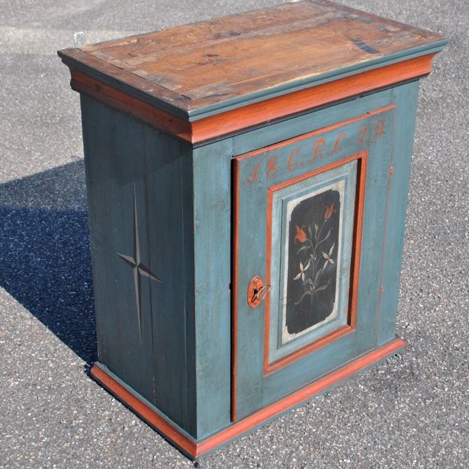 Danish painted hanging cabinet, 1829.