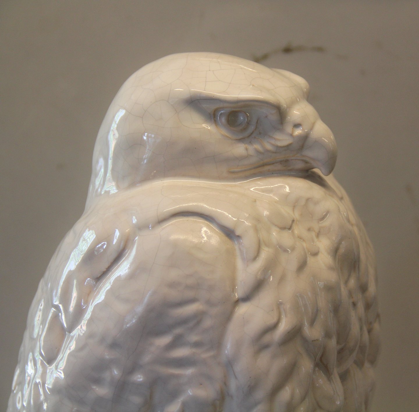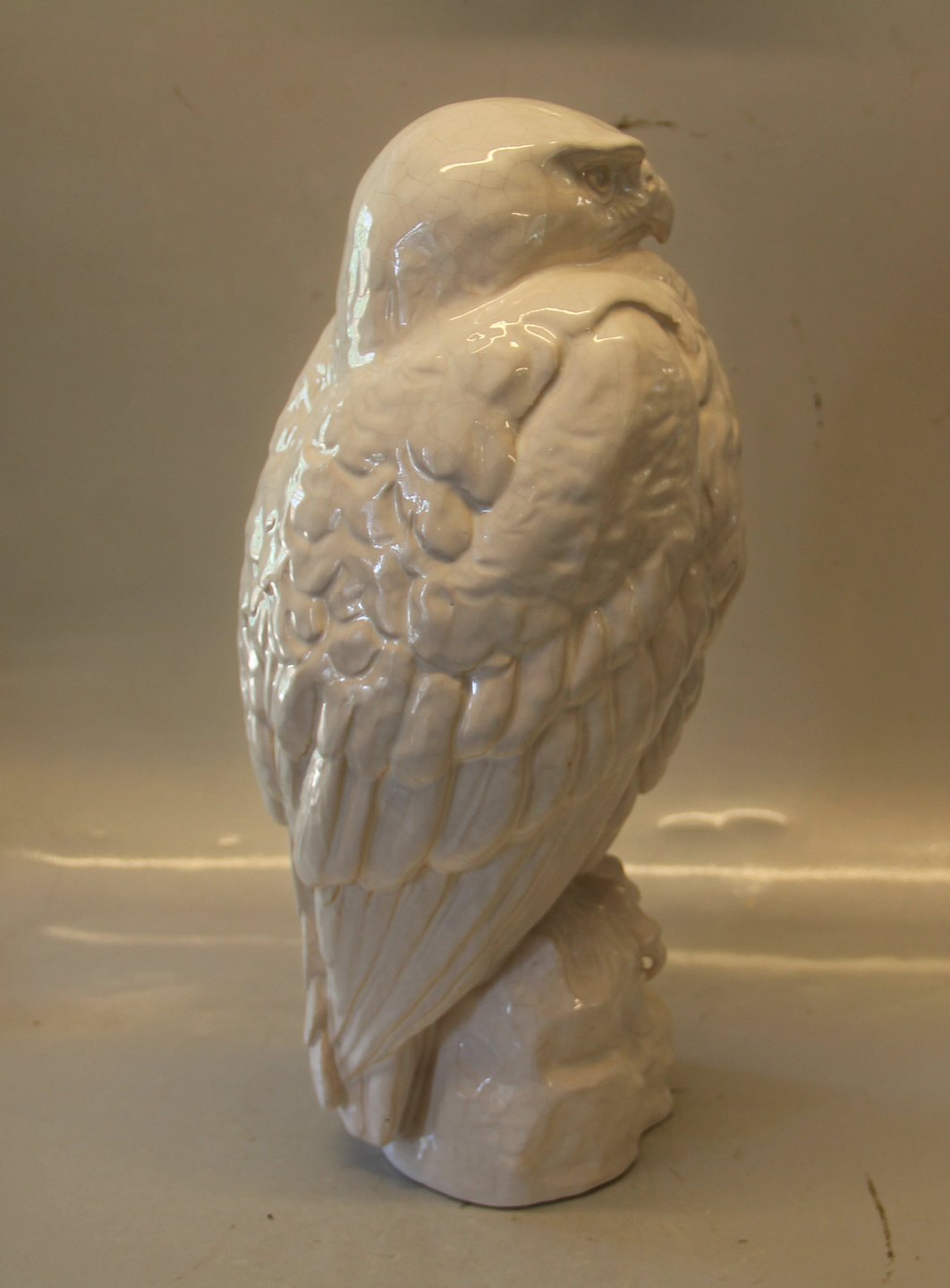 L. Hjorth Bornholm Stor keramisk ørn 38 cm hvid krakkeleret glasur Se den i Klosterkælderens Fugleudstilling